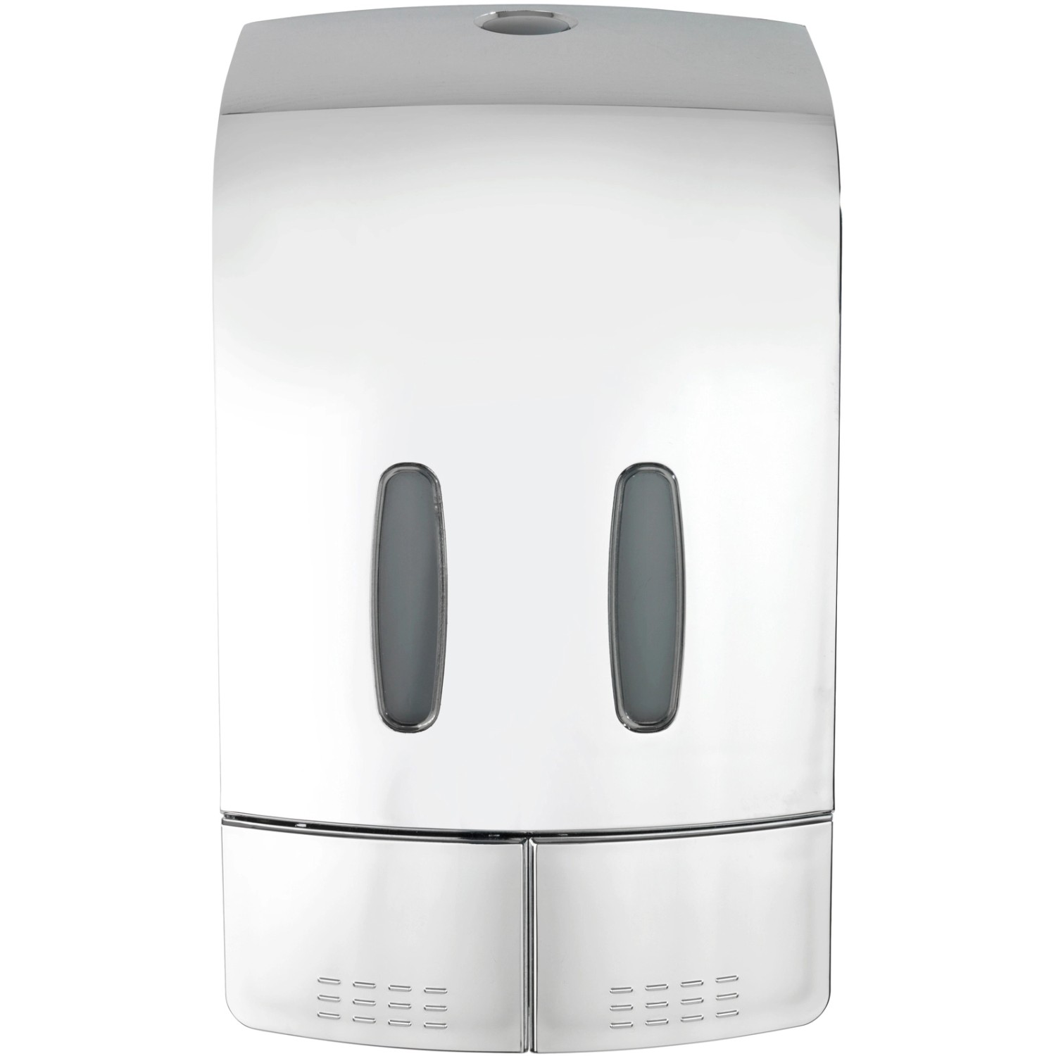 Ganz einfach auf Knopfdruck erhält man die gewünschte Menge. Die beiden Kammern sind individuell bis zu je 480 ml befüllbar, so dass in die eine Kammer beispielsweise Desinfektionsmittel und in die andere Seife gefüllt werden kann. So hat man einen zweifachen Verwendungszweck in einem Spender.