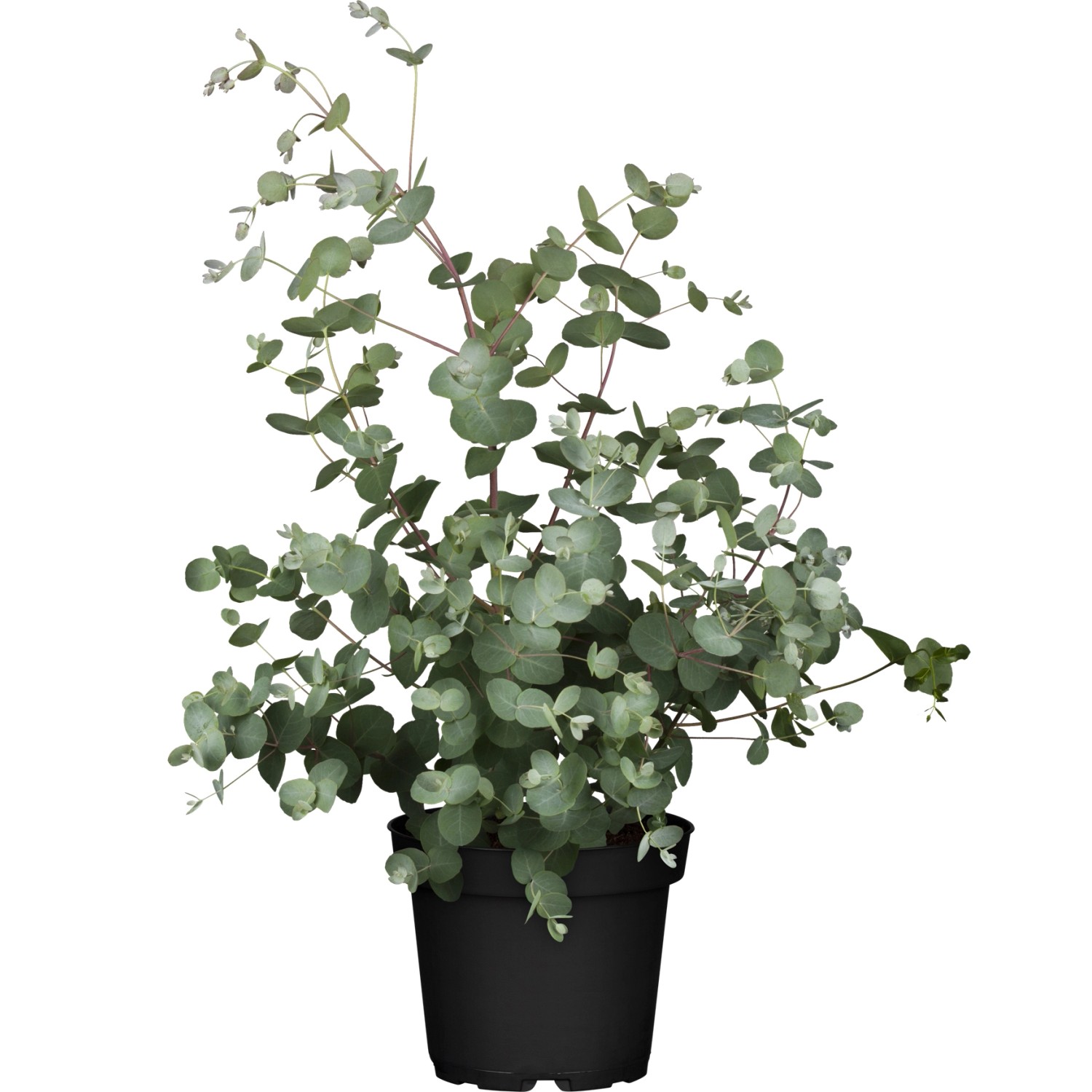 Der Eukalyptus (Eucalyptus gunnii) bildet von Dezember bis Februar weiße, duftende Blüten. Die Blätter des Eukalyptus verströmen durch ihren hohen Gehalt an ätherischen Ölen den bekannten Eukalyptusduft. Dieses Laubgehölz erreicht im Alter eine Höhe von 3 m bis 5 m und eine Breite von 1 m bis 2 m. Er ist wohl die bekannteste Pflanze Australiens und umfasst etwa zwei Drittel des gesamten Baumbestandes. Auch in unseren Gefilden macht der winterharte Eukalyptus eine gute Figur, denn er kann auch im Winter problemlos draußen bleiben.
