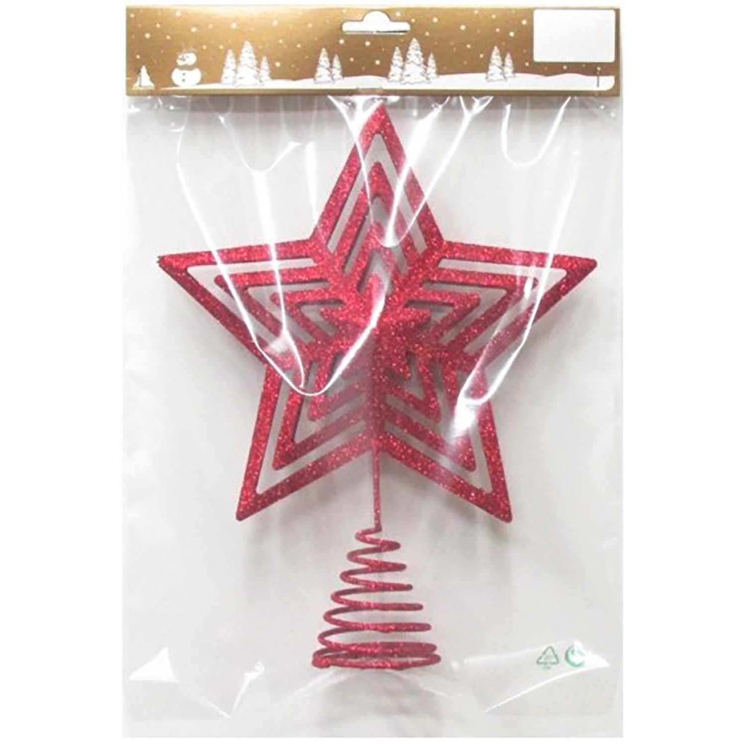 Baumspitze Stern aus Metall mit Rotem Glitzer 20 x 25 cm