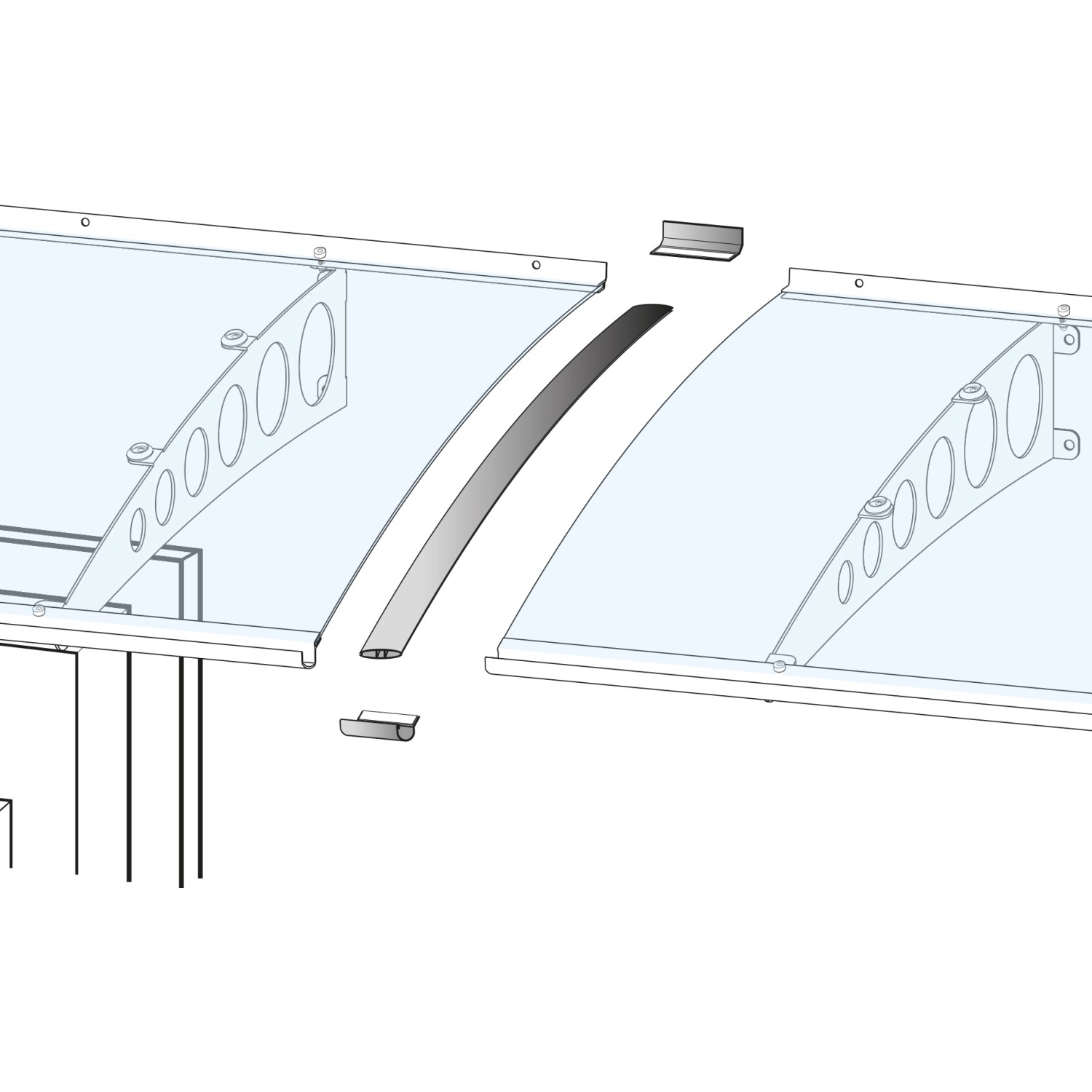 Verbindungsset für Vordach Silber eloxiert 8 cm x 100 cm