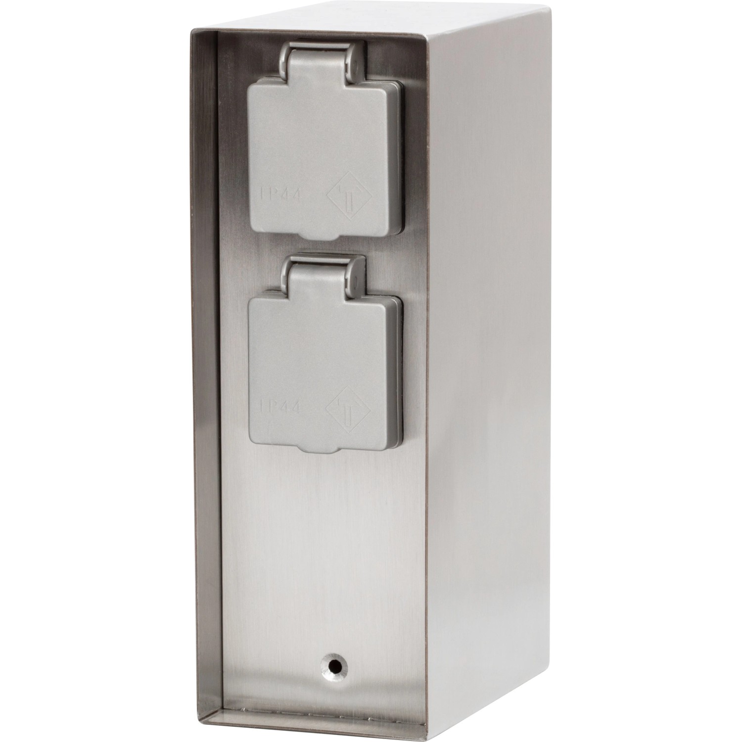 Die silberne Edelstahl-Steckdosensäule ist mit vier IP44 Steckdosen ausgestattet, welche in grauer Farbe hervorgehoben werden. Die Nennspannung beträgt 230 V bei einem Nennstrom von 16 A. Die maximale Leistung der Steckdosensäule beträgt 3500 W. Durch die Schutzklasse IP44 ist die Steckdosensäule für den geschützten Außenbereich geeignet. Ein Anschlusskabel ist im Lieferumfang nicht enthalten. Die Steckdosensäule ist 120 mm breit, 85 mm lang und 230 mm hoch.