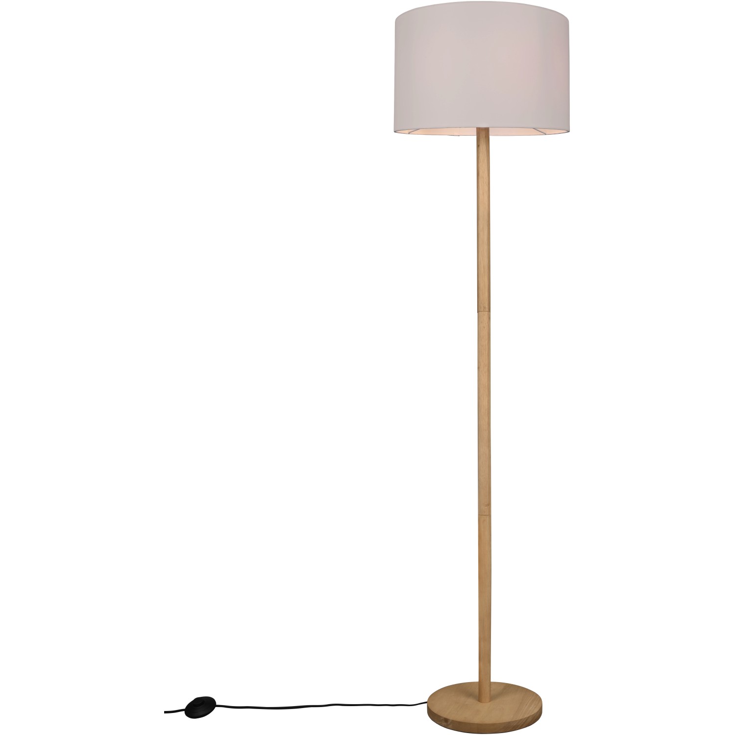 Aus Holz in natürlicher Optik und Stoffschirm in weiß