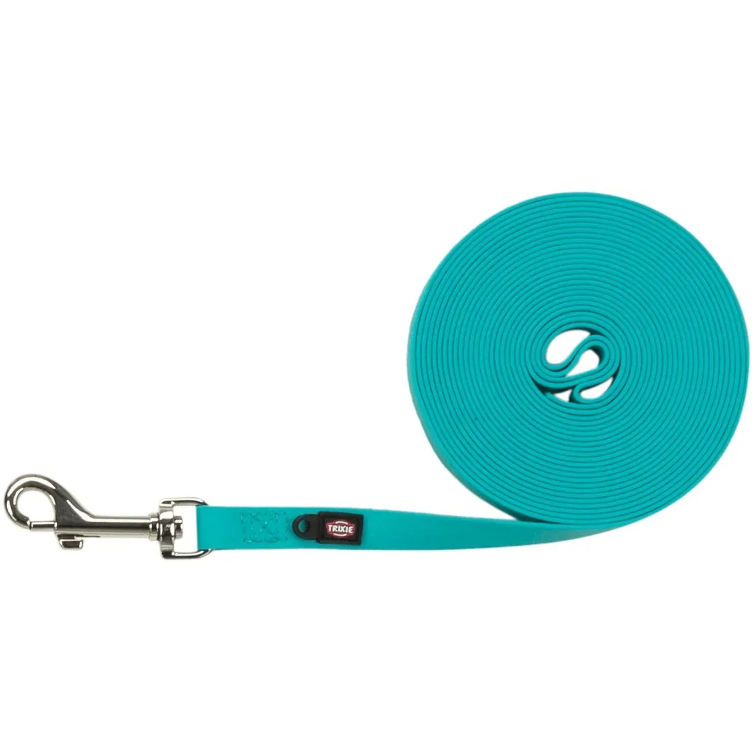 Die Trixie Hunde-Schleppleine Easy Life besticht durch ihr besonders belastbares Gurtband mit PVC-Ummantelung, welches einen langlebigen Gebrauch garantiert. Die Schleppleine dient zur Hundeausbildung, z. B. zum Antrainieren von Kommandos auf Distanz für die Fährtenarbeit oder Nachsuche (Jagd) und ermöglicht dem Hund viel Bewegungsfreiheit. Zum Reinigen kann sie einfach abgewischt werden. Sie ist mit einer Öse z.B. zum Befestigen der Hundemarke oder eines Flashers ausgestattet.