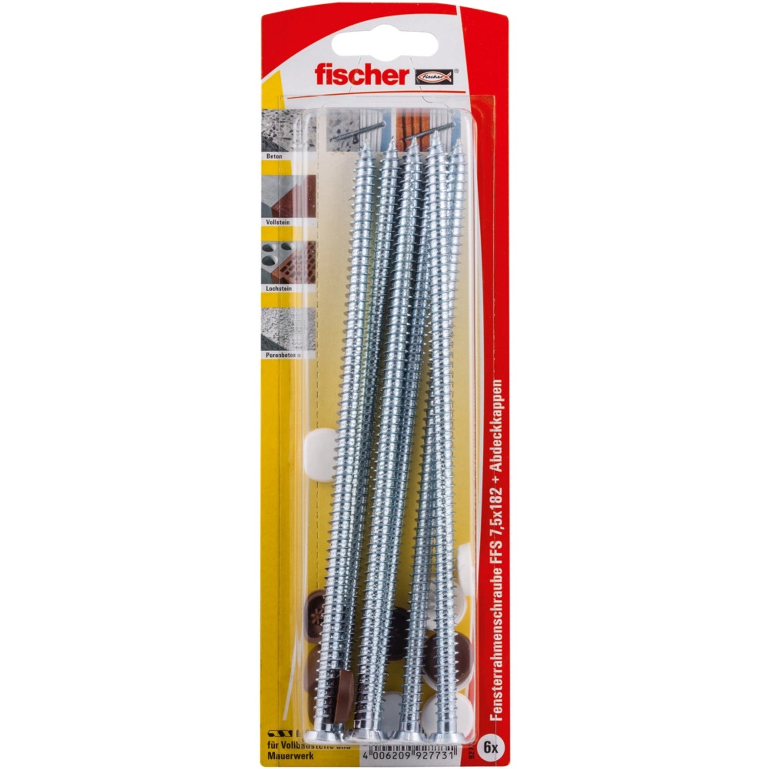 Fischer Fensterrahmenschraube FFS Ø 7,5 mm x 182 mm T30 mit Abdeckkappen