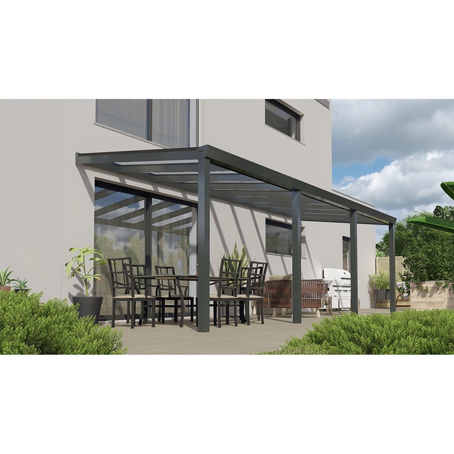Terrassenüberdachung Basic 700 cm x 250 cm Anthrazit Glanz Glas