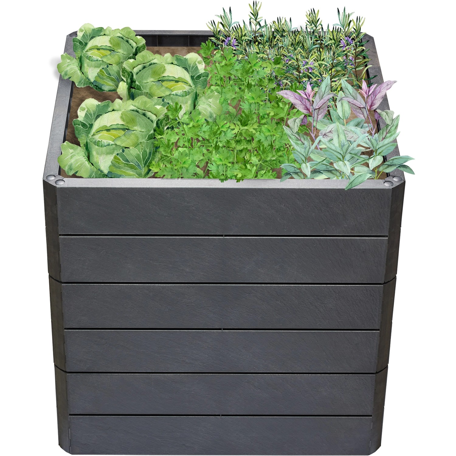 Das Ergo Quadro Hochbeet-System ist ein modular konzipiertes Hochbeet und ermöglicht Ihnen den Aufbau eines an Ihre Bedürfnisse und Platzverhältnisse angepasstes Hochbeet. Es ergeben sich vielfältige Gestaltungsmöglichkeiten durch die platzsparende und kompakte Ausführung. Eine der beliebtesten Lösungen, kleinräumige Flächen effektiv zur gärtnerischen Nutzung umzufunktionieren. Das Ergo Quadro Hochbeet überzeugt ebenfalls als Blickfang in Ihrem Garten durch die dekorative Oberfläche in 3D-Steinoptik mit originalgetreuer Schieferstruktur, moderner Farbgebung, Langlebigkeit und UV-Stabilität. Alle Hochbeete werden aus Recyclingkunststoff hergestellt und sind zu 100 % recycelbar. Im Gegensatz zu Hochbeeten aus anderen Materialien muss das Ergo Quadro Hochbeet nicht gestrichen oder innen mit teurer Folie ausgelegt werden.