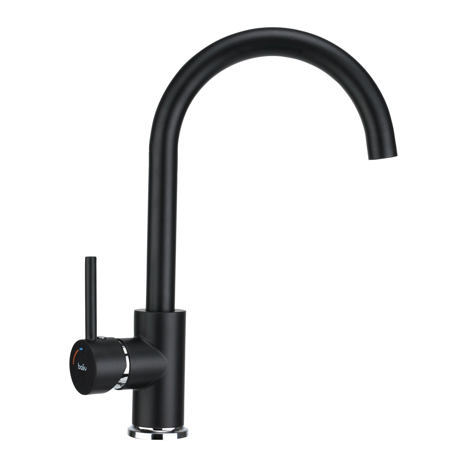 Die baliv Küchenarmatur KI-1831 fällt mit ihrem hohen und gebogenen Auslauf direkt ins Auge. Ihr edles und zeitloses Design in Schwarz passt zu sämtlichen Küchenstilen. Und dank nützlicher Extras verschafft dir die Armatur noch mehr Erleichterung in deiner Küche. Das Spülbecken zu reinigen oder bequem dein Geschirr abzuwaschen, geht mit der schwenkbaren Armatur ganz leicht. Den Auslauf kannst du um ganze 360° drehen.