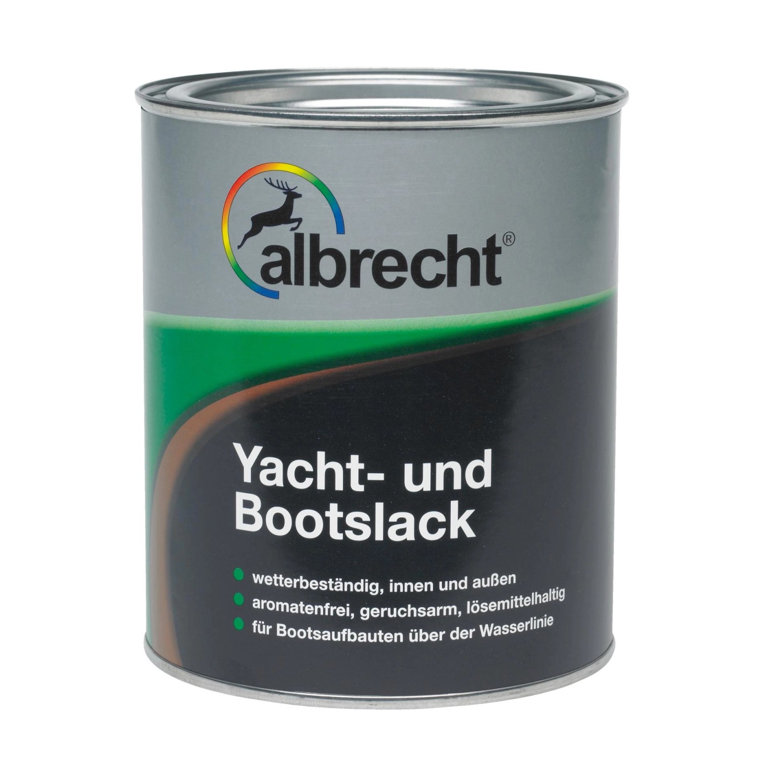 Hochglänzender Polyurethan-Kunstharz-Klarlack für Möbel, Türen, Holzvertäfelungen auf Booten und Schiffen sowie Bootsaufbauten oberhalb der Wasserlinie Innen und Außen. Albrecht Yacht- und Bootslack ist aromatenfrei, geruchsarm, lösemittelhaltig. Gut verlaufend, schnelltrocknend, stoß- und schlagfest, extrem abriebfest, wetter- und spritzwasserbeständig.