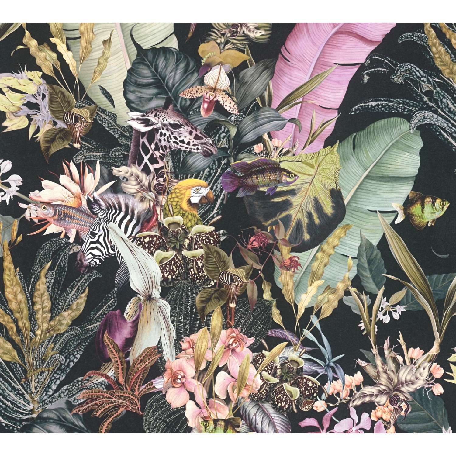 Vliestapete Blumenoptik Tiere Matt glatt Schwarz Rosa FSC®