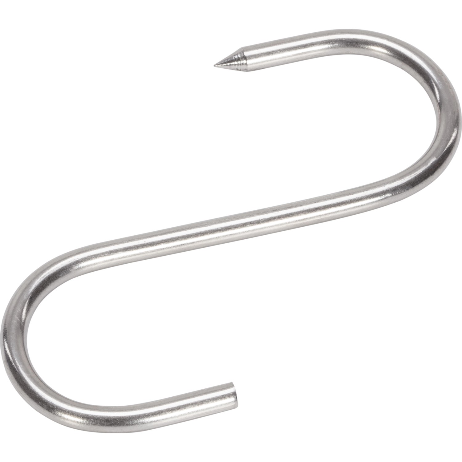 Der symmetrische Fleischerhaken dient zur Befestigung von Ketten und Seilen mit einem maximalen Querschnitt von 35 mm. Er kann gleichermaßen in Innen- wie Außenbereichen zum Einsatz kommen. Ausgeführt ist das Seilzubehör als S-Haken mit einem flachen und einem spitzen Ende. Der Haken überzeugt durch Langlebigkeit und Stabilität. Er ist aus rostfreiem Edelstahl gefertigt und witterungsbeständig. Dadurch stellt er eine hohe Belastbarkeit zur Verfügung. Er besitzt die Maße 100 mm x 38 mm x 4,4 mm (H x B x Ø).