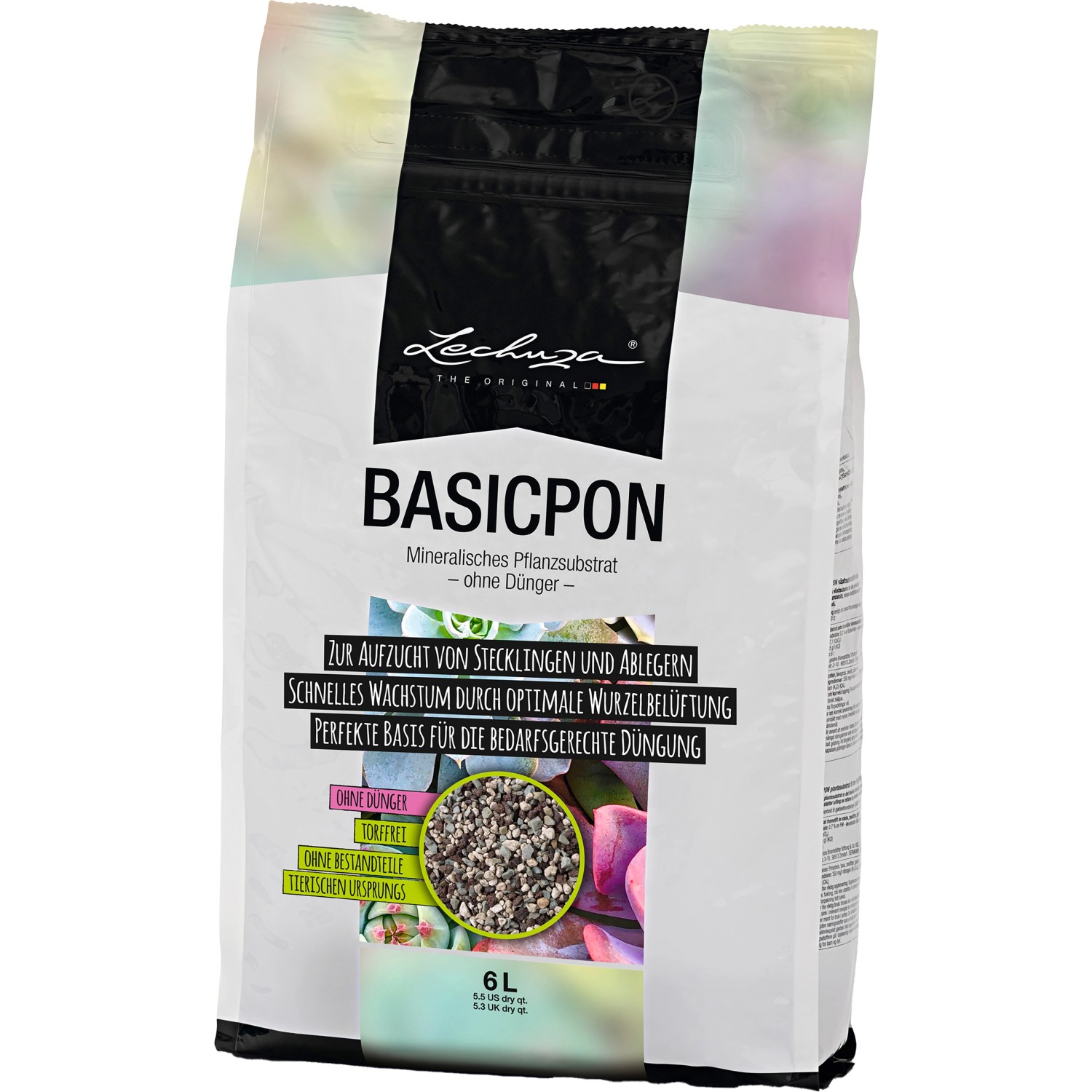 Ideal für sensible Pflanzen Das Pflanzsubstrat Basicpon ist strukturstabil und gewährleistet durch die spezielle Zusammensetzung eine ideale Belüftung der Wurzeln. Das enthaltene Zeolith stabilisiert den pH-Wert und reguliert die Wasserzufuhr zur Pflanze. Da das Substrat frei von Düngemitteln ist, kann die Pflanze ganz individuell nach den eigenen Bedürfnissen nachgedüngt und mit Nährstoffen versorgt werden. Auch eignet es sich dadurch besonders für empfindliche Pflanzen oder Allergiker.