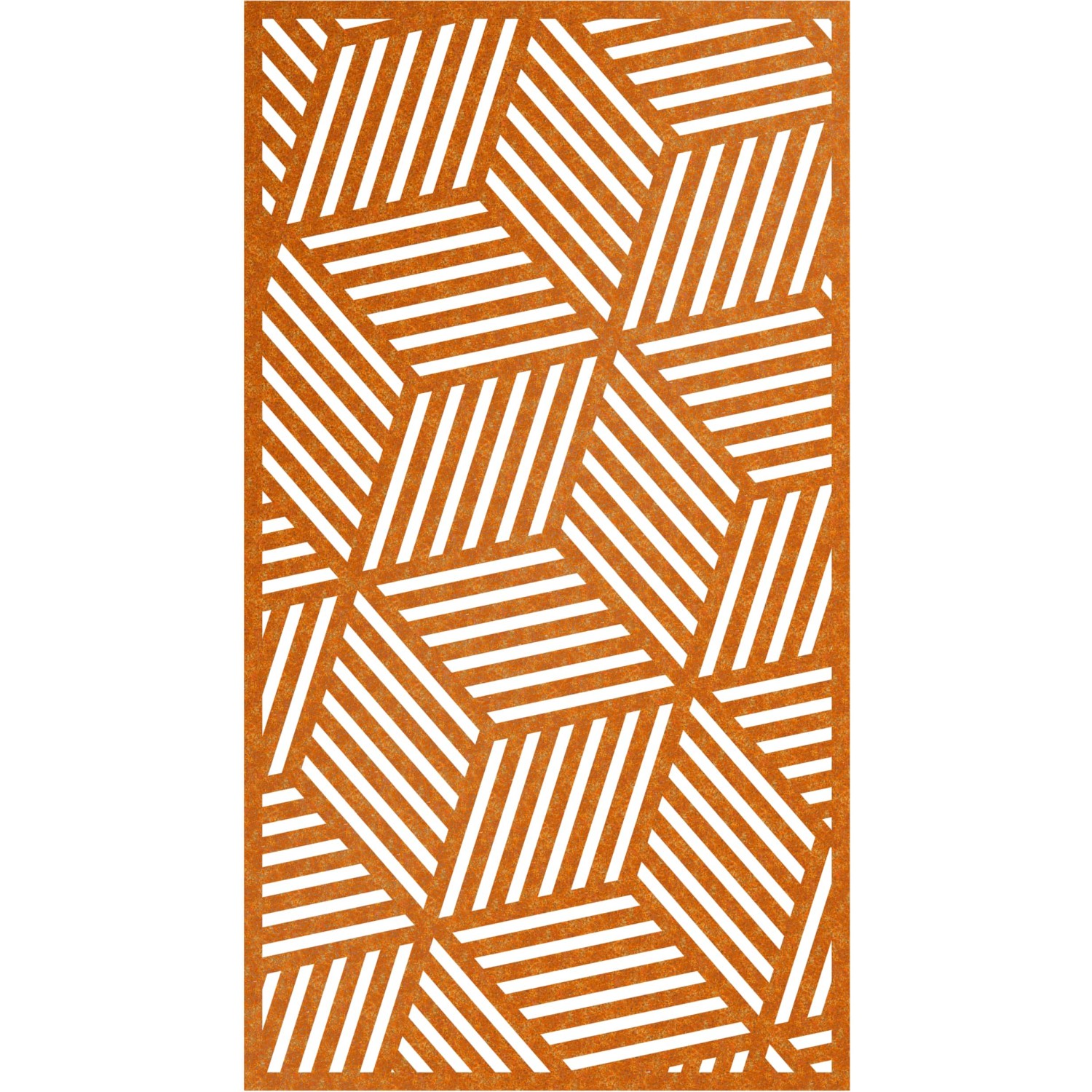 Der Eleo Sichtschutz Reno aus wetterfestem Cortenstahl besticht mit einem ausgefallenen Rautenmuster im modernen Stil, das sich harmonisch in Ihre Gartengestaltung einfügt. Reno ist von Hand aus hochwertigem, formstabilem Metall geschmiedet und hält Witterungen zuverlässig stand. Das abstrakte Muster bietet einen effektiven Sichtschutz.