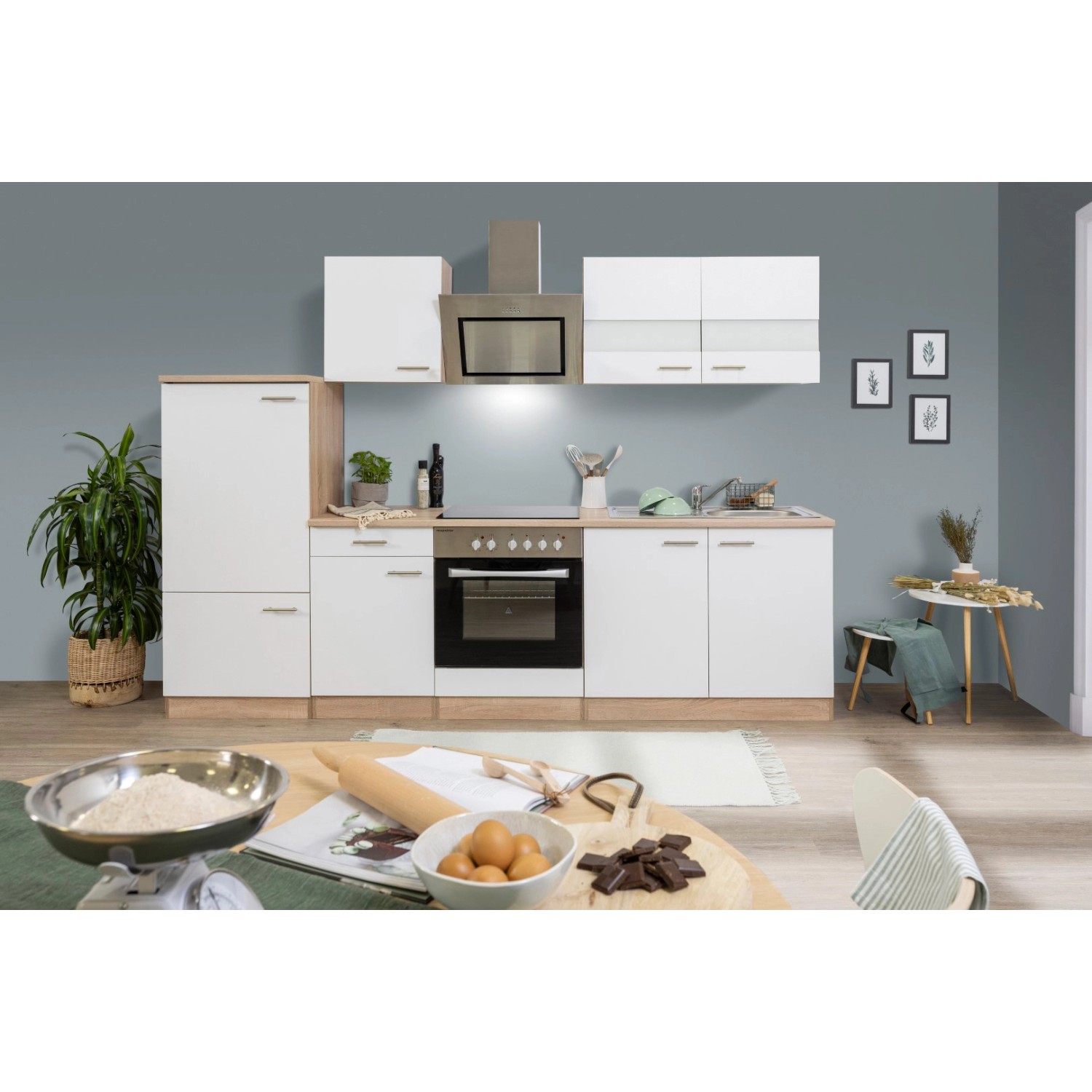Respekta Küchenzeile 270 cm mit Glaskeramikkochfeld Weiß - Eiche Sägerau