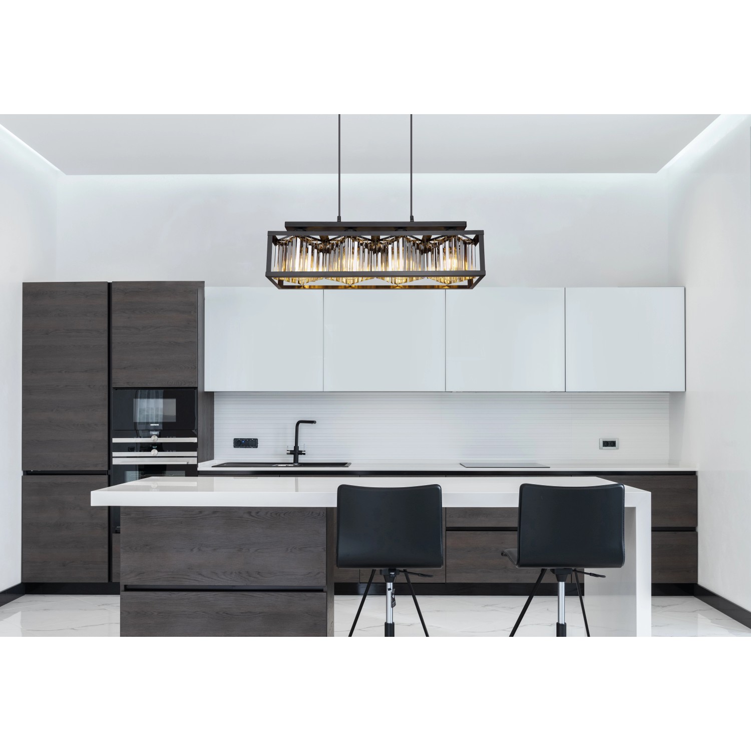 Globo Pendelleuchte Mathilde 4-flammig Schwarz matt Rauchfarben 68 x 17 x 120 cm