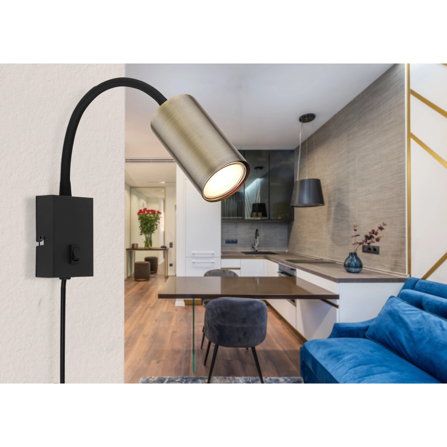 Globo Wandlampe Robby 1-flammig Schwarz matt 70 x 440 mm