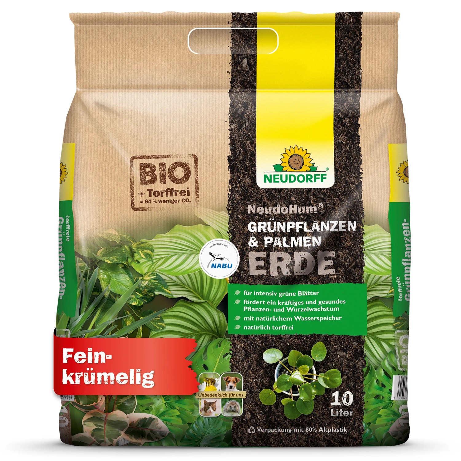 Durch die Nutzung nachwachsender Rohstoffe verursacht die NeudoHum Grünpflanzen- & PalmenErdeBei Verwendung unserer torffreien NeudoHum Grünpflanzen- & PalmenErde