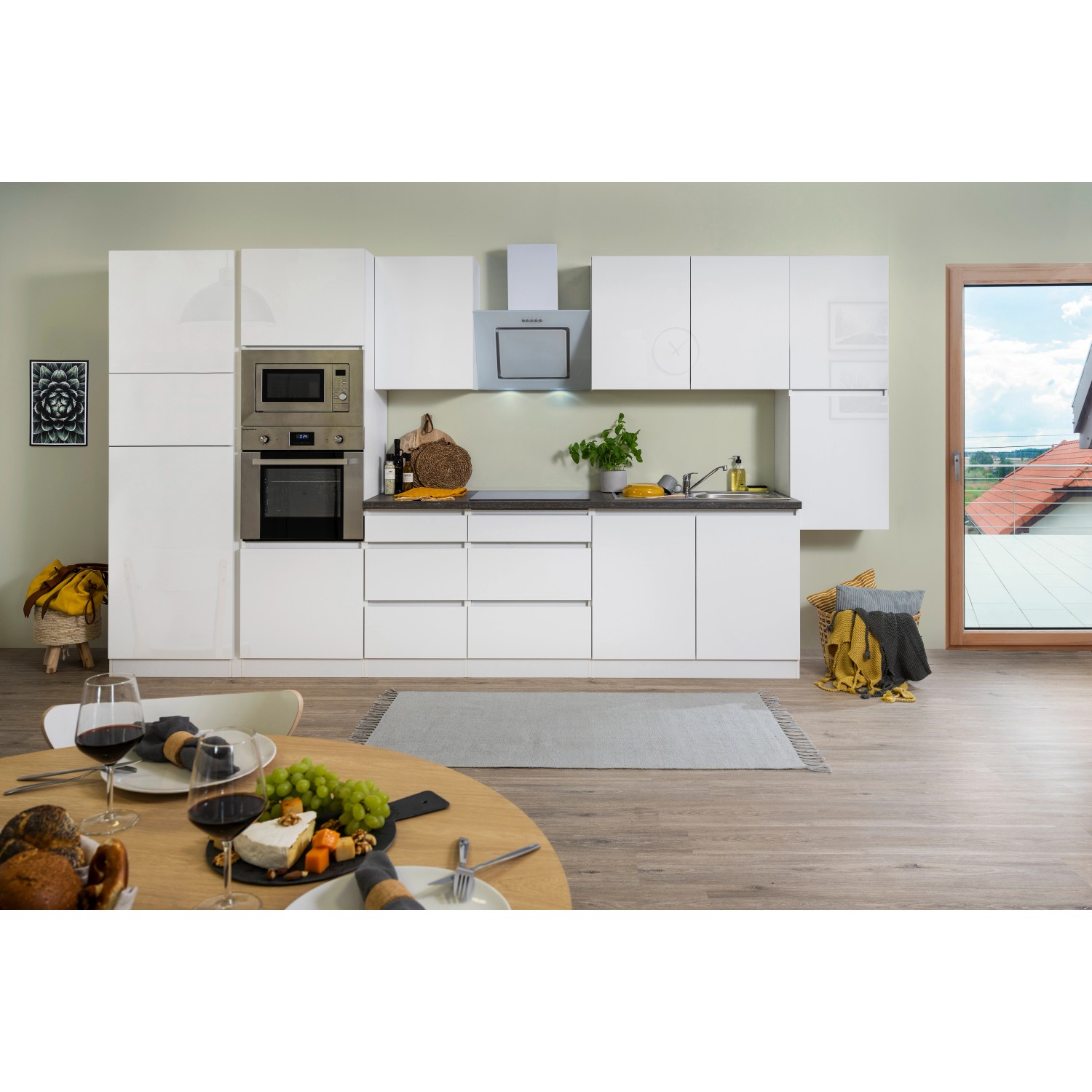 Respekta Premium Küchenzeile Grifflos 385 cm Weiß Hochglanz-Weiß