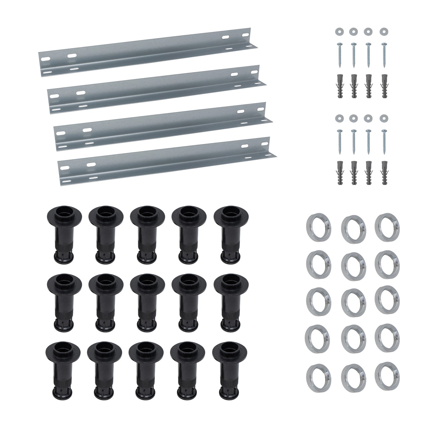 Set bestehend aus: - 15 Füßen und - 4 Montageschienen