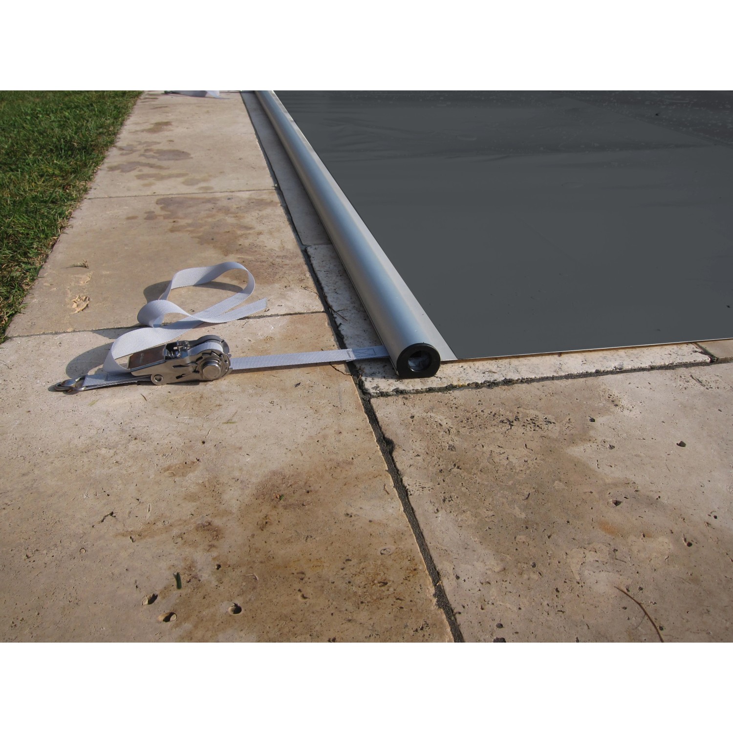 Die anthrazitfarbige Pool-Rollabdeckung Flex von Chemoform ist eine neue innovative Abdeckung, die alle Vorteile einer herkömmlichen Rollabdeckung hat und noch ein paar mehr. Ihr Trägersystem bietet stärkere Träger bei kleinerem Gewicht. Die Träger sind problemlos bis 100 kg belastbar, ohne dass sie sich dabei langfristig verformen.