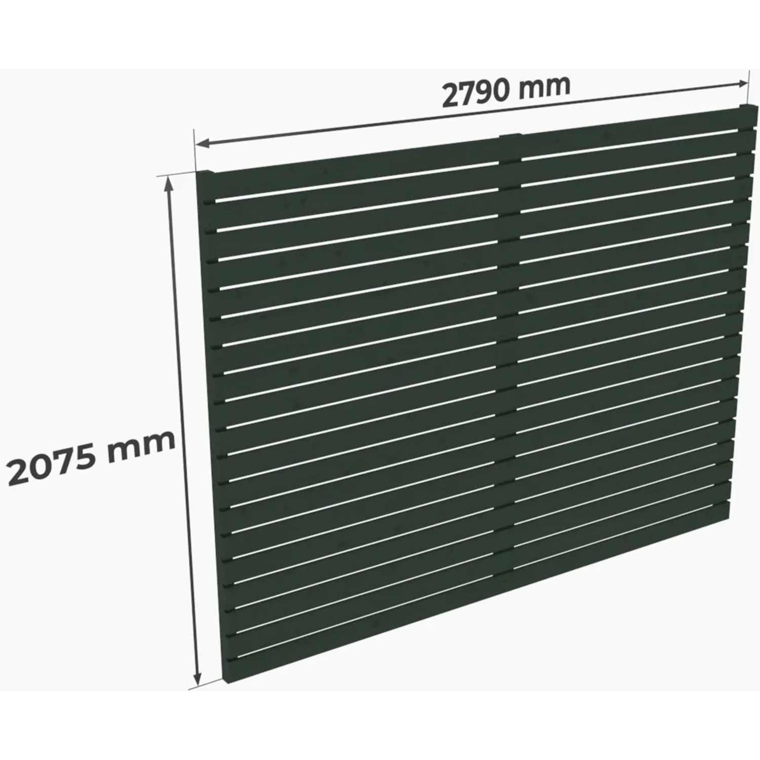 Produktmerkmale: Breite: 279 cm Höhe: 207,5 cm Stärke gehobelte Bretten: 2,1 cm x 9,5 cm Chromoxidgrün Oberflächenfarbe