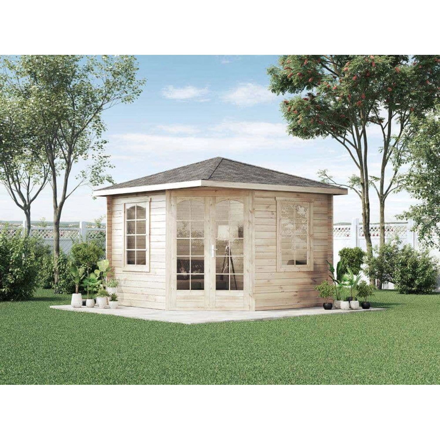 Alpholz Gartenhaus Viking ISO Spitzdach 326 cm x 326 cm Natur