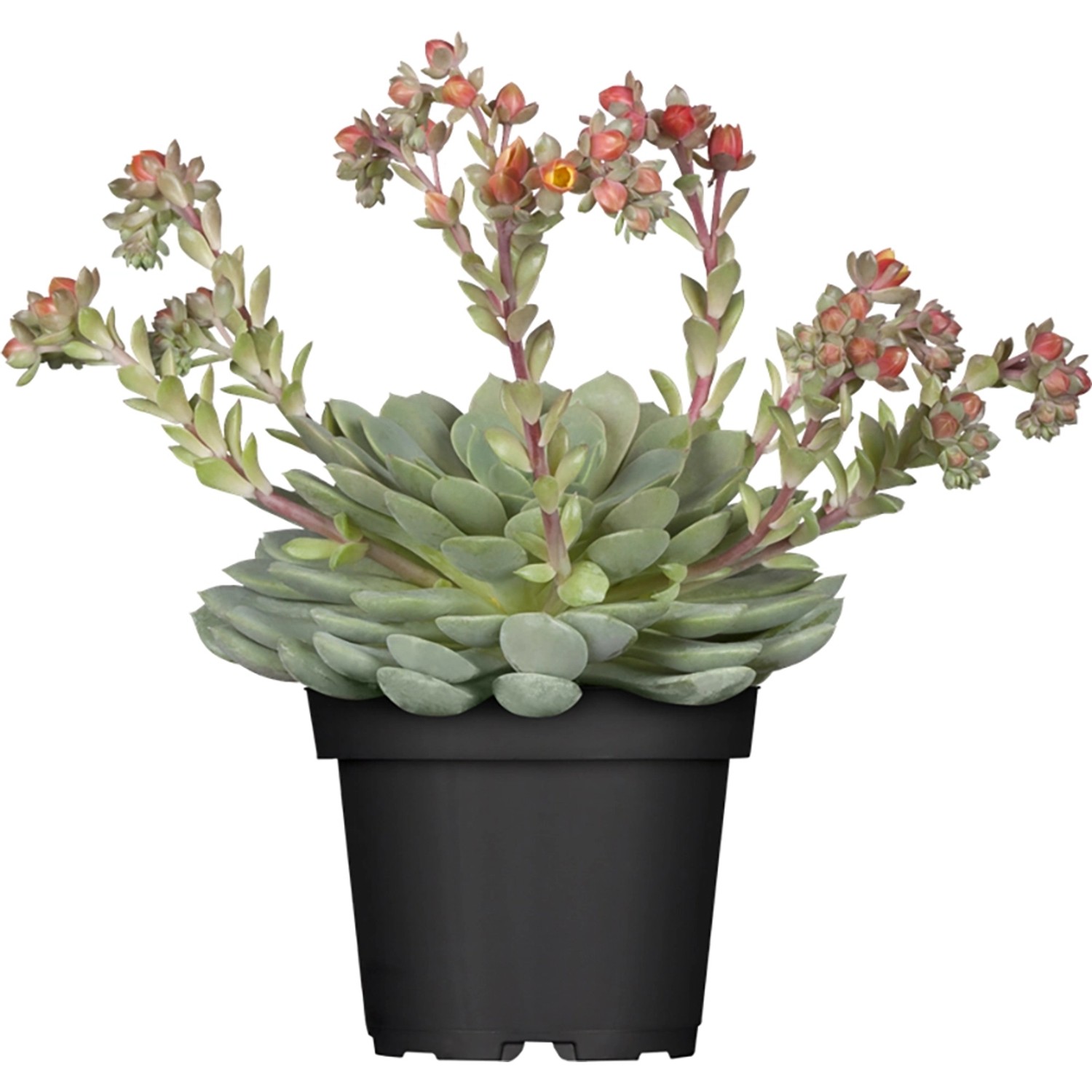 Die Echeveria benötigt wenig Wasser und kann in einem gut durchlässigen Boden wachsen. Sie ist eine großartige Wahl für Terrassen, Balkone oder als Zimmerpflanze. Die Echeveria ist in der Regel pflegeleicht und kann bei richtiger Pflege jahrelang wachsen und gedeihen. Diese Variante wird im Laufe seiner Zeit vier Blütenstiele bilden.