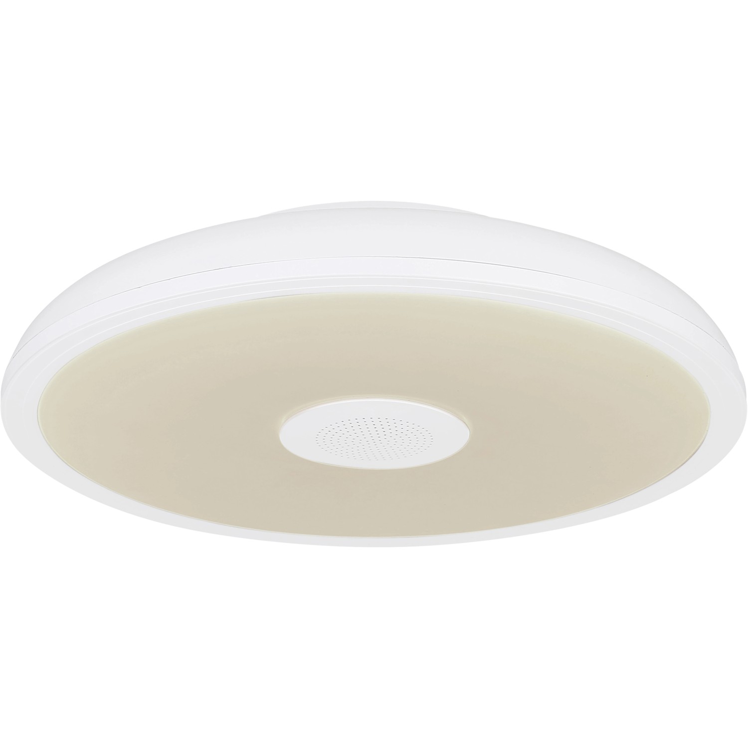 Die Globo LED-Deckenleuchte Raffy mit einem Durchmesser von 28 cm in Weiß ist eine hervorragende Ergänzung für Ihr Interieur. Die runde Deckenlampe aus weißem Kunststoff besteht aus einem opalen Kunststoffring, der den integrierten 3W-Bluetooth-Lautsprecher umschließt und die enthaltenen LEDs abdeckt, die ein helles Licht von 1000 Lumen erzeugen.