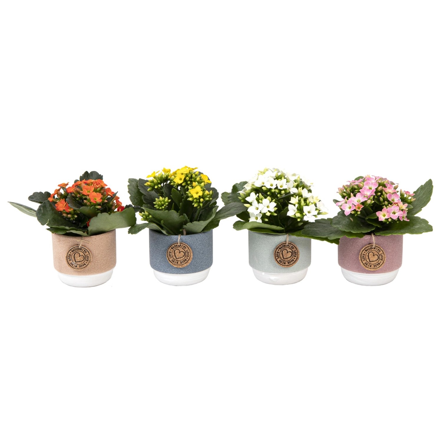 Das Flammende Käthchen (Kalanchoe Blossfeldiana) ist der Klassiker unter den blühenden Zimmerpflanzen und verdankt seine Beliebtheit den prächtigen, dichten Blütendolden und seiner pflegeleichten Art. Diese atemberaubende Zimmerpflanze verzaubert mit ihren leuchtenden Blüten in verschiedenen Farben wie Rot, Orange, Rosa und Gelb. Das Keramik-Gefäß verleiht der Pflanze einen eleganten und stilvollen Touch, der jeden Raum aufwertet. Das Flammende Käthchen ist eine sukkulente Pflanze und bringt Freude mit ihren langanhaltenden Blüten. Sie bevorzugt einen hellen Ort, direkte Sonneneinstrahlung sollte aber vermieden werden. Die Pflanze sollte regelmäßig gegossen werden, allerdings ohne Entstehen von Staunässe. Die Kombination aus Flammendem Käthchen und der Keramik ist eine perfekte Ergänzung für das eigene Zuhause oder Büro.
