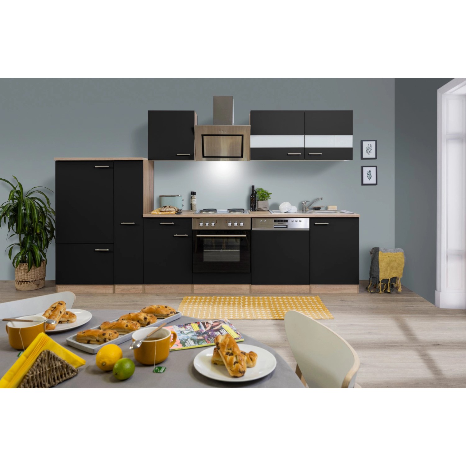 Respekta Economy Küchenzeile KB310ESSS 310 cm Schwarz-Eiche Sägerau