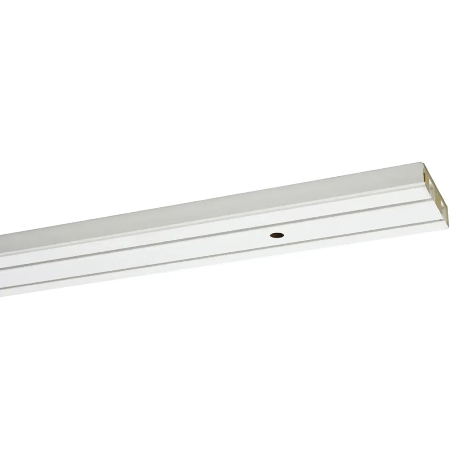 Die Schiene aus Holzwerkstoffen ist mit weißem Kunststoff ummantelt und für die Deckenmontage bereits vorgebohrt. Die 2-läufige Schiene eignet sich für die Befestigung von 2 Gardinenläufen. Eine Blende kann durch einfaches Aufclipsen am Profil der Vorhangschiene befestigt werden. Die Schiene hat eine Breite von 77,5 mm und eine Höhe von 17,5 mm. Sie ist in verschiedenen Längen erhältlich.