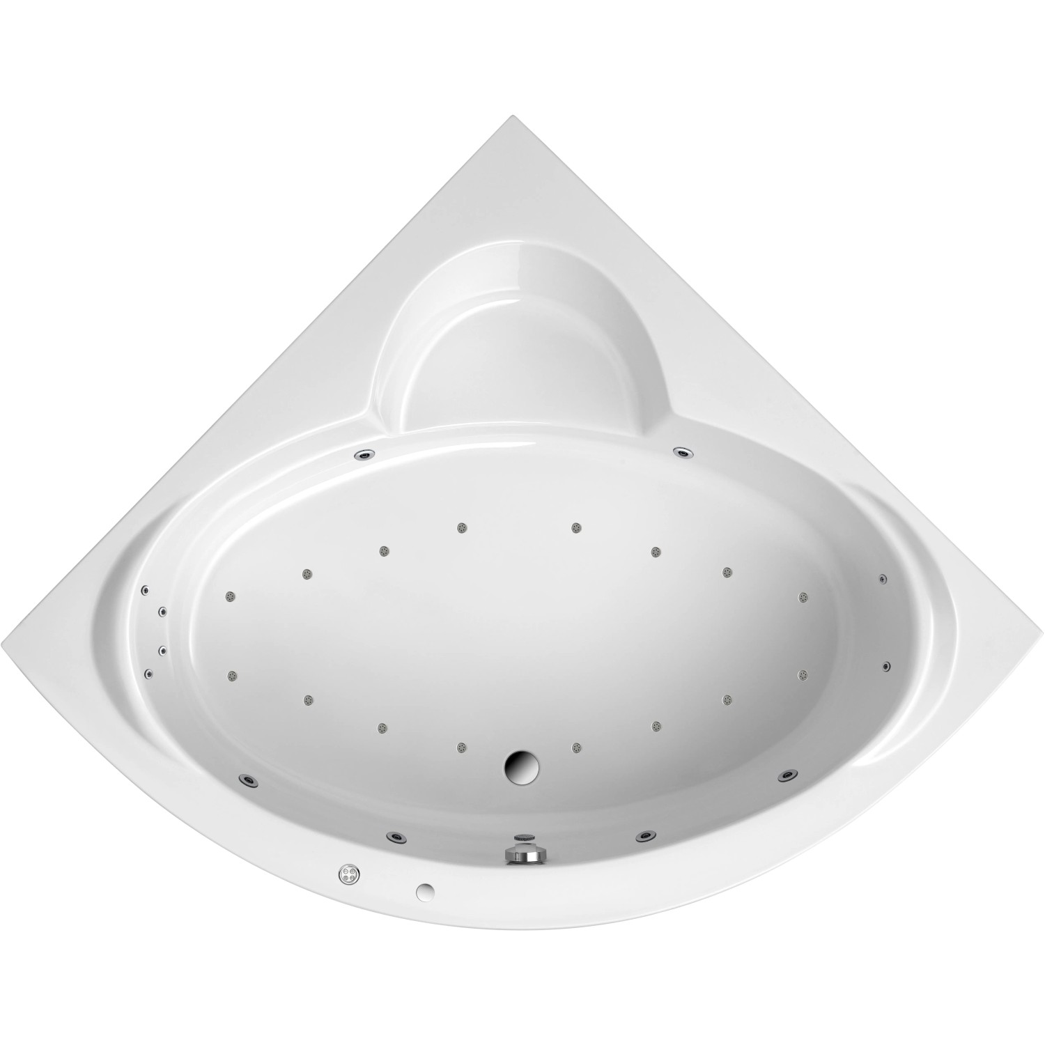 Die Restwasserentleerung erfolgt über die Whirlpoolpumpe. Der Whirlpool ist komplett installiert und anschlussfertig - inklusive Ab- und Überlaufgarnitur in der Farbe Chrom.