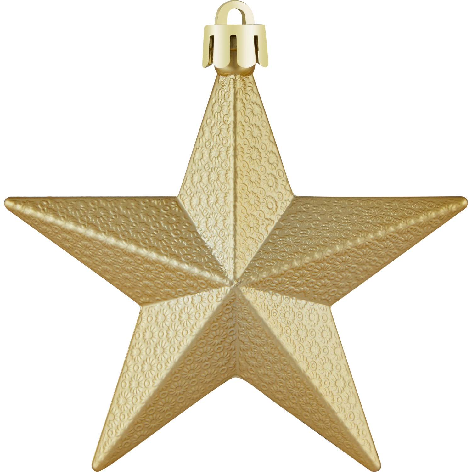 Bringe festlichen Glanz in deine vier Wände mit den eleganten Weihnachts-Deko Sternen in edlem Gold. Das Set enthält drei hochwertige Sterne aus robustem Kunststoff, die ideal zum Aufhängen geeignet sind. Mit einer Höhe von 91 mm und einer Breite von 85 mm passen sie perfekt an deinen Weihnachtsbaum, ans Fenster oder als Highlight an jede Tür. Die goldene Farbe verleiht den Sternen eine warme Ausstrahlung und schafft eine festliche Atmosphäre. Die Sterne sind leicht und einfach anzubringen, wodurch sie nicht nur als Baumschmuck, sondern auch als Dekoration für Dein gesamtes Zuhause vielseitig einsetzbar sind. Ob am Weihnachtsbaum, an Girlanden oder als besonderer Hingucker in deiner Wohnung - diese Sterne bringen Glanz und Eleganz in deine Weihnachtsdekoration.