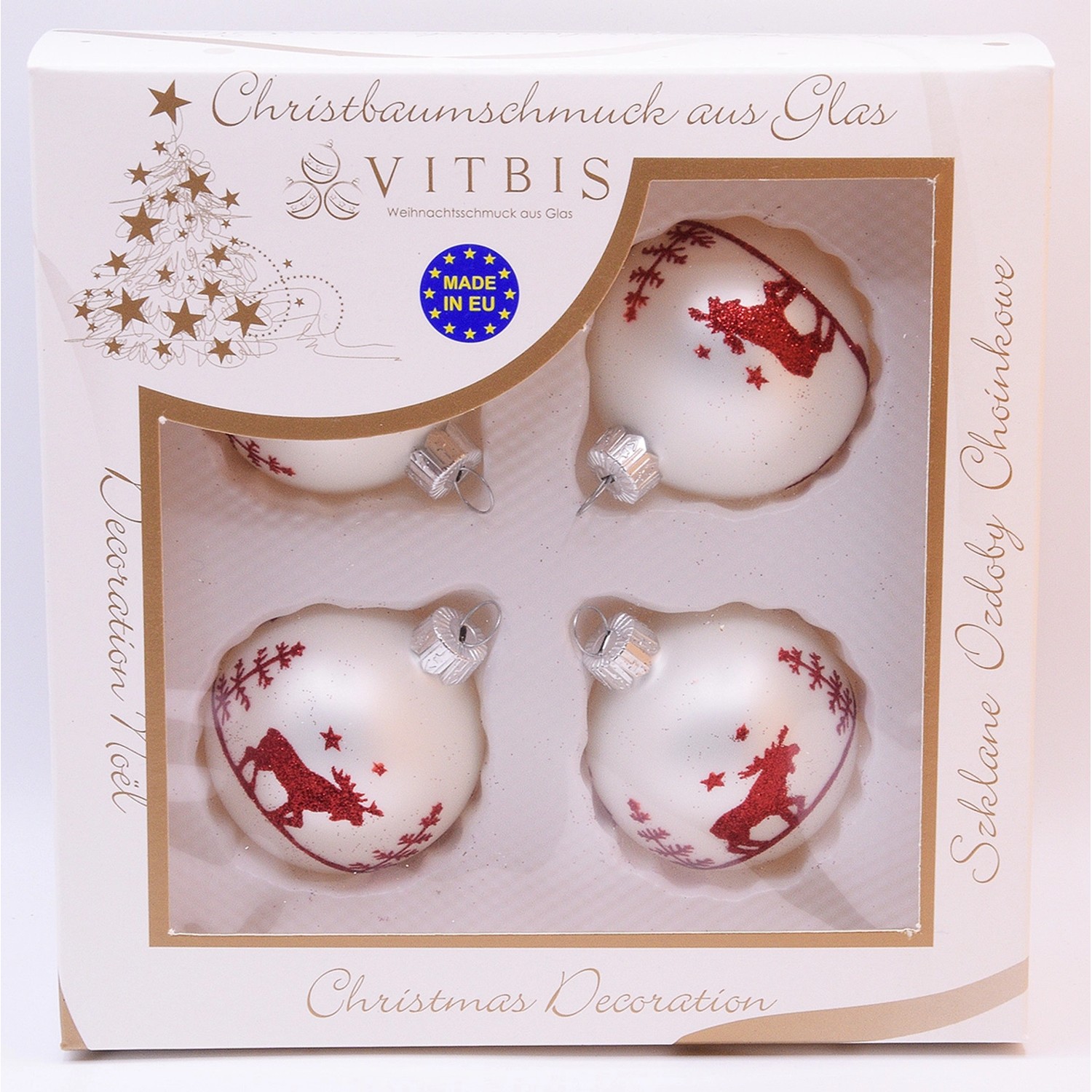Vitbis Glas-Weihnachtskugeln 4-teilig Dekor Weiß Rot Ø 6 cm