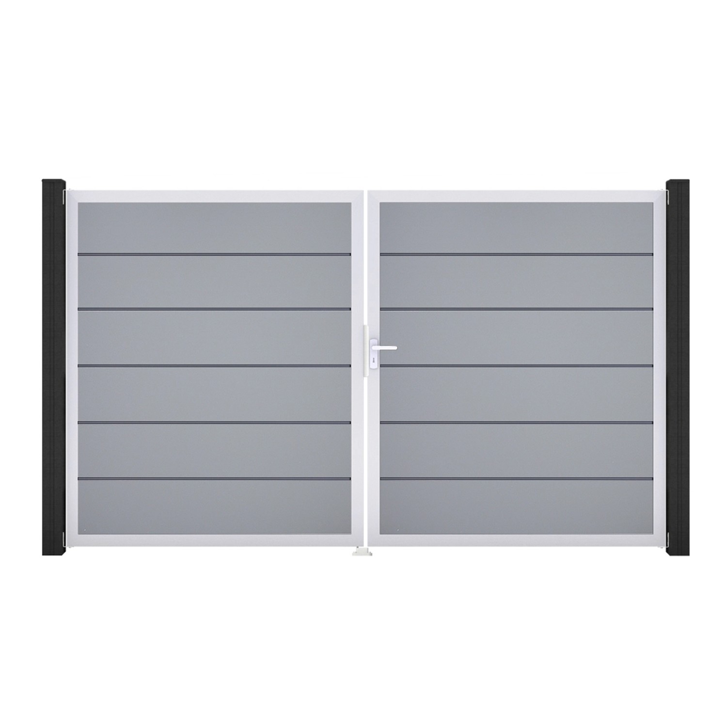 Die Zaunelemente werden mit größter Sorgfalt in eigener Produktion aus langlebigem PVC (Kunststoff) gefertigt, damit Sie lange Freude an Ihrem Sichtschutz haben.Dieses 2-flügelige Tor ist in der Ausführung DIN Rechts erhältlich und verfügt über einen umlaufenden Rahmen aus rostfreiem Aluminium, was für besondere Stabilität sorgt.