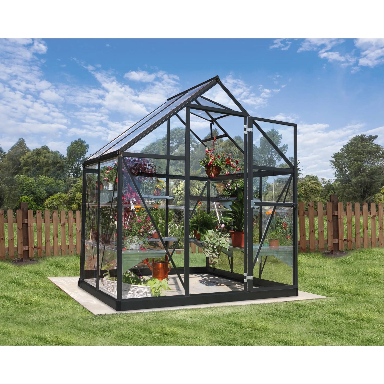 Mit dem freistehenden Gewächshaus Palram - Canopia inkl. Fundamentrahmen verfügen sowohl Einsteiger als auch erfahrene Gärtner über alles, was man zur Pflanzenzucht benötigt. Die Grundfläche von 2,3 m² bietet ausreichend Platz für ein optimales Wachstum deiner Pflanzen, Kräuter und Gemüsesorten.