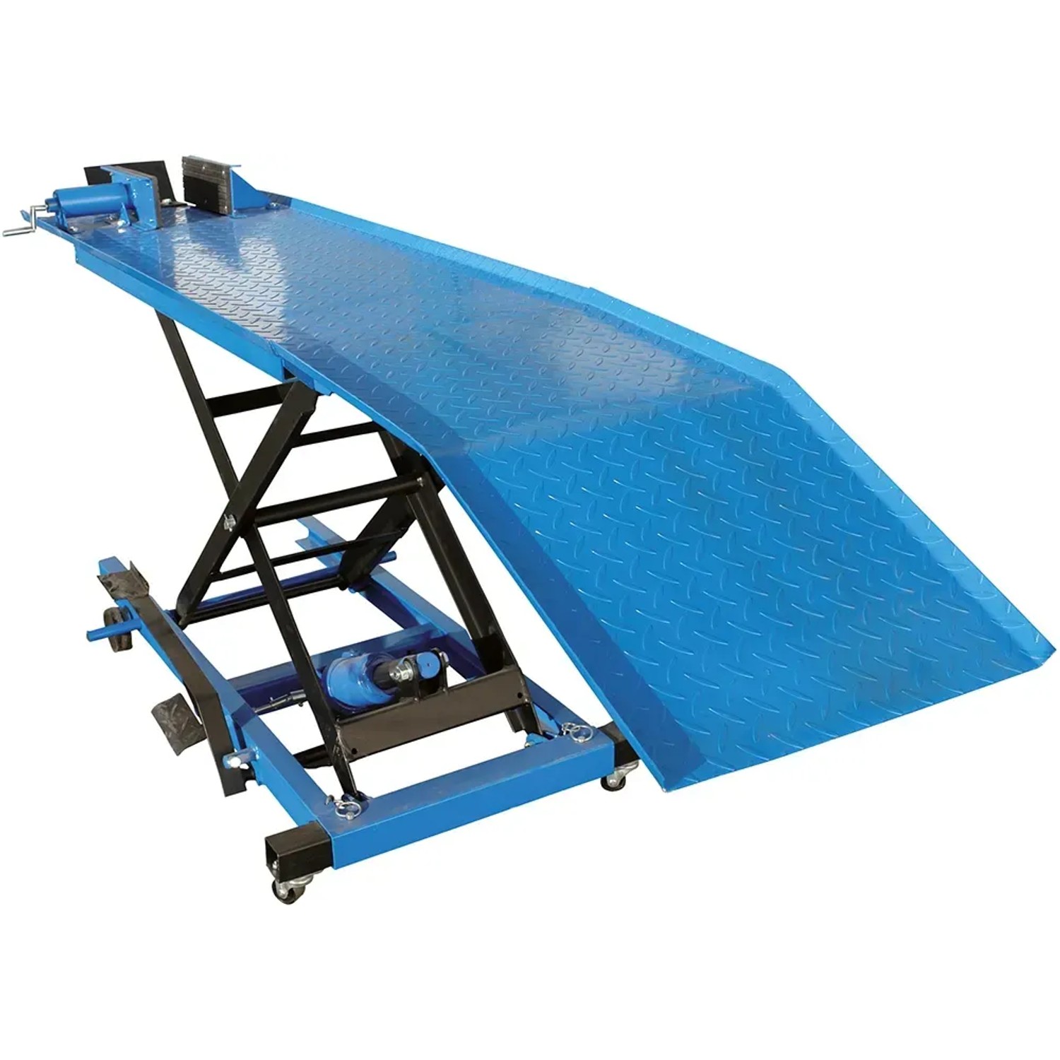 Die Motorrad Montagerampe GMR 360 besticht durch Ihre robuste und hochwertige Ausführung. Sie ist bestens geeignet für alle Reparatur- und Wartungsarbeiten an Ihren Zweirrädern bis zu einem Gewicht von 360 kg. Durch die extra große Hubhöhe von bis zu 82 cm ist rückenschonendes Arbeiten auch über einen längeren Zeitraum hinweg garantiert.
