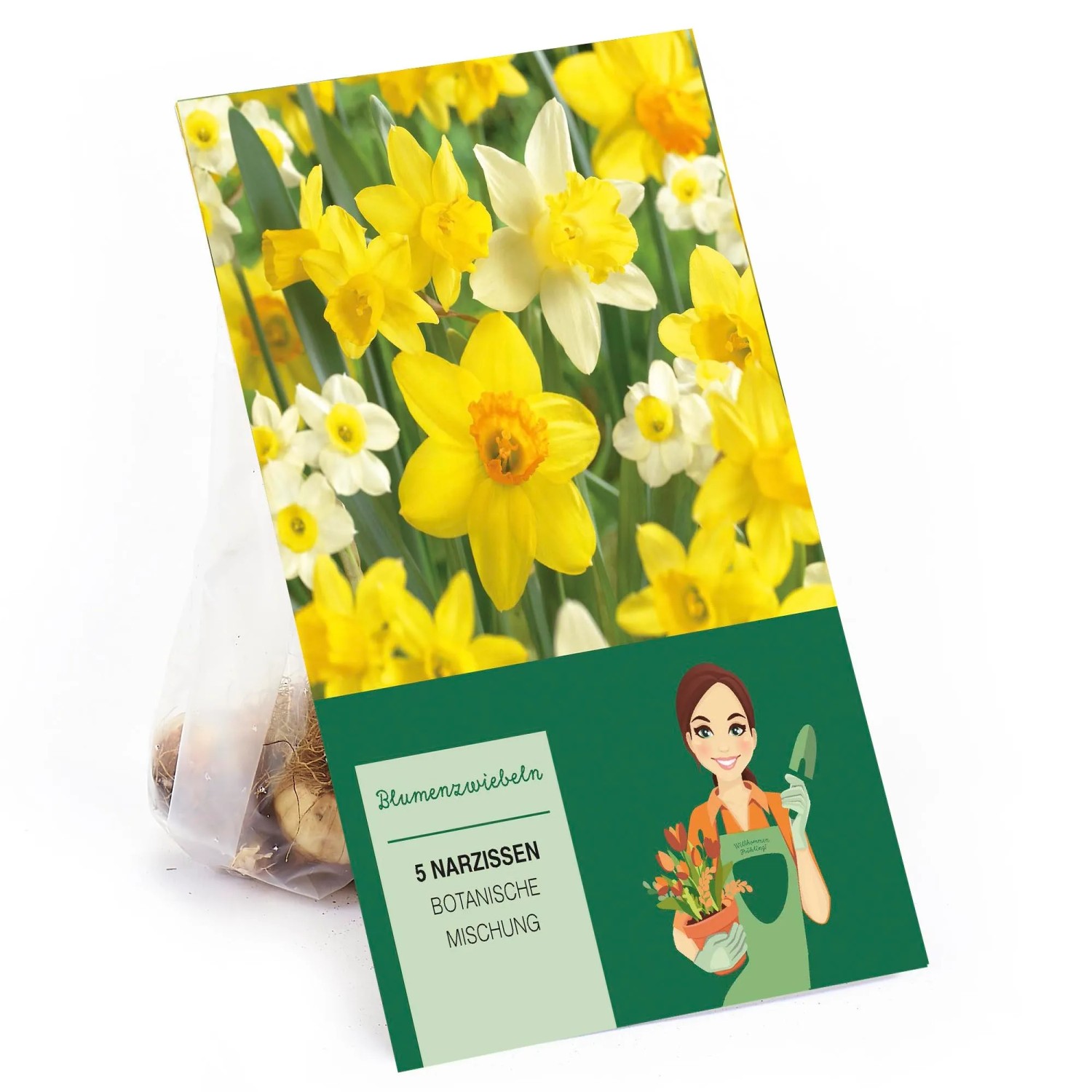 Die Mischung der botanischen Narzissen (Narcissus) umfasst eine Vielzahl von Narzissen, die durch ihre zarten Blüten und bemerkenswerte Anpassungsfähigkeit bestechen. Diese Mischung bietet eine reiche Palette an Farben und Formen, von strahlendem Gelb bis hin zu weichem Weiß, oft mit kontrastierenden Kelchen und duftenden Blüten.