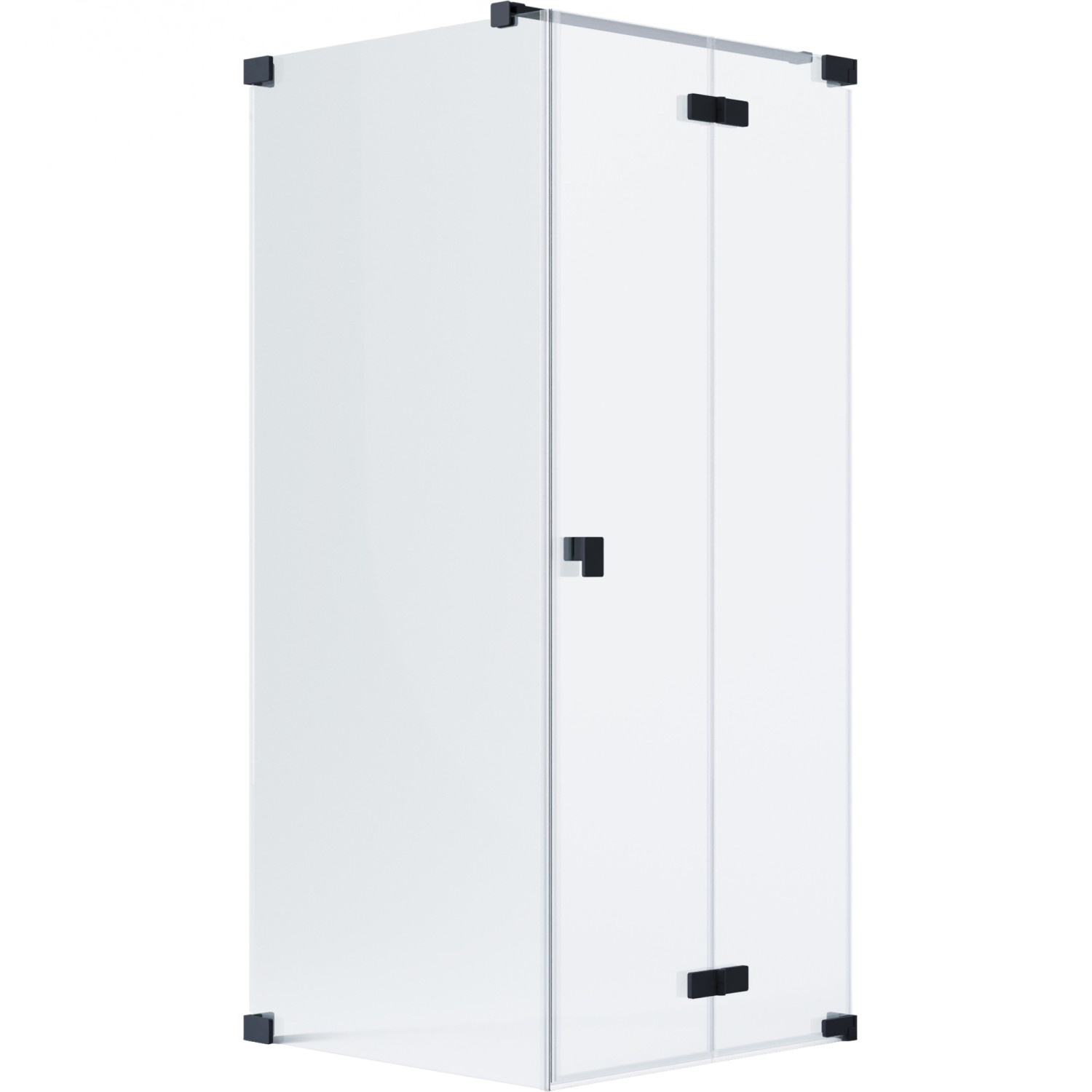 Die Schöner Wohnen Eckdusche mit Drehfalttür und Seitenwand aus der Serie Fit ist eine rahmenlos montierbare Duschkabine mit schwarzmatten Aluminium-Beschlägen und 8 mm Einscheibensicherheitsglas (ESG). Mit einer Breite von 90 cm, einer Tiefe von 100 cm und einer Höhe von 200 cm ist sie großzügig dimensioniert und schützt zuverlässig vor Spritzwasser. Die Beschläge sind innen flächenbündig verarbeitet, was zusammen mit der schmutzabweisenden Nano-Glasbeschichtung die Reinigung ganz besonders einfach macht. Der in die Scharniere integrierte Hebe-/Senkmechanismus dichtet zuverlässig nach unten ab und schont die Dichtlippe.