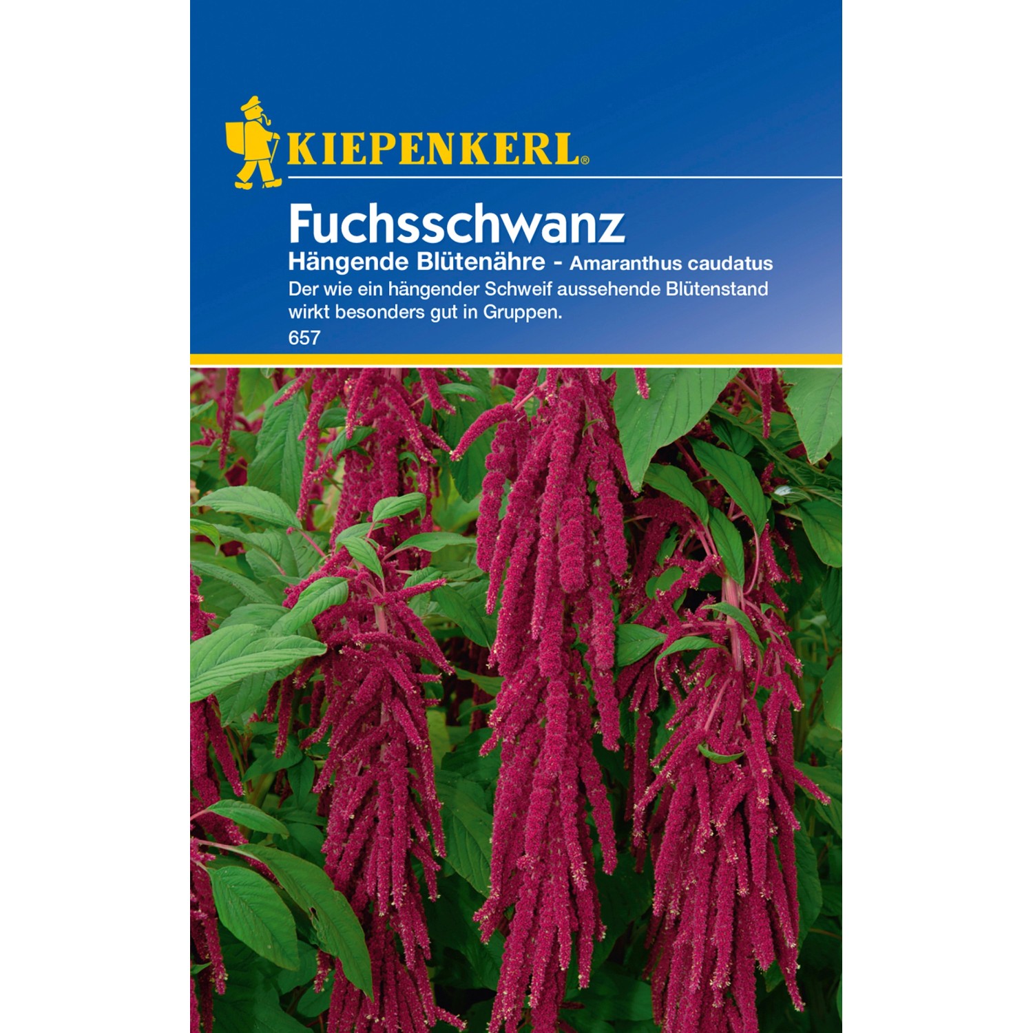 Der Kiepenkerl Fuchsschwanz (Amaranthus caudatus) in Rot sieht aus wie ein hängender Schweif. Er kann zur Straußbindung für frische und trockene Sträuße genutzt werden oder aber in Gruppen im Staudenbeet gepflanzt werden.