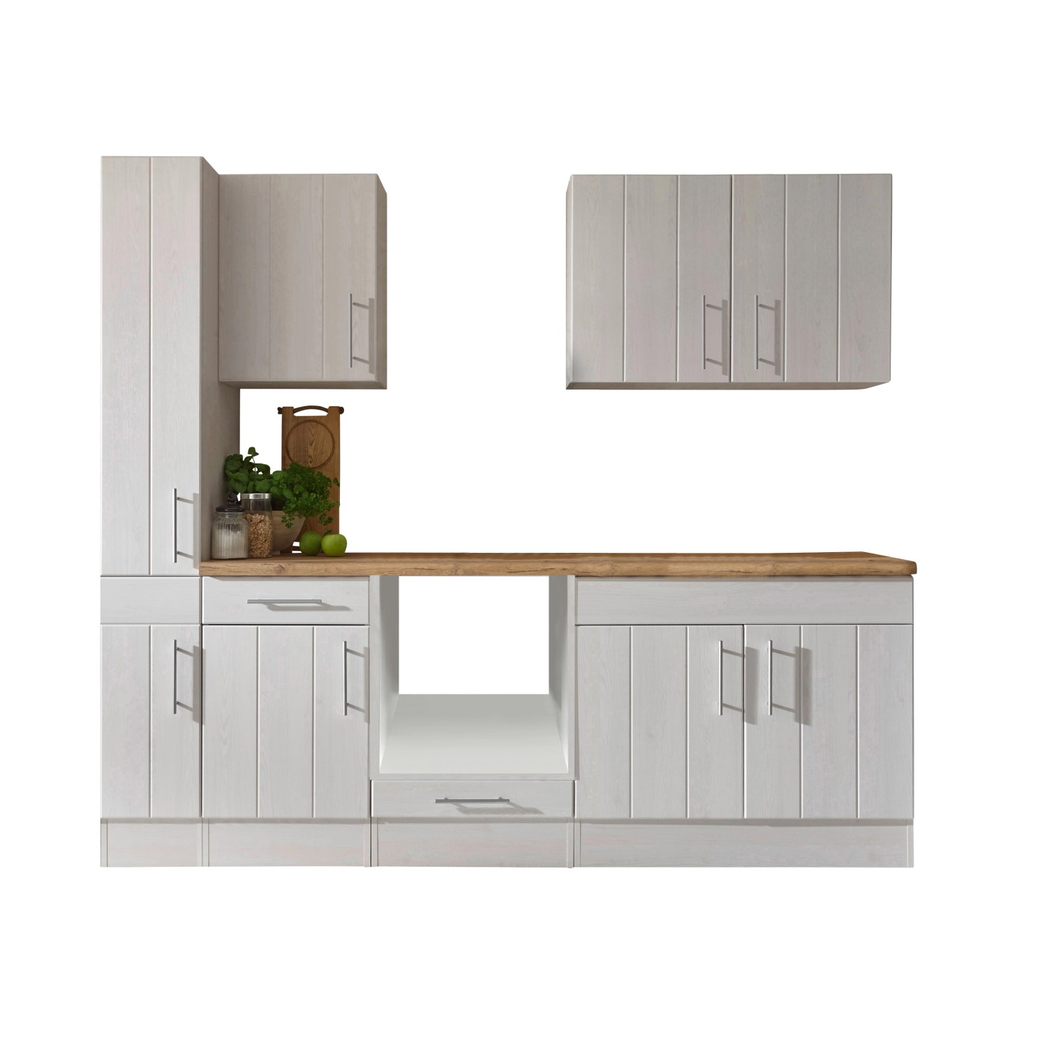 Respekta Küchenzeile Anton LBBERP240LHWC ohne E-Geräte 240 cm Lärche Weiß