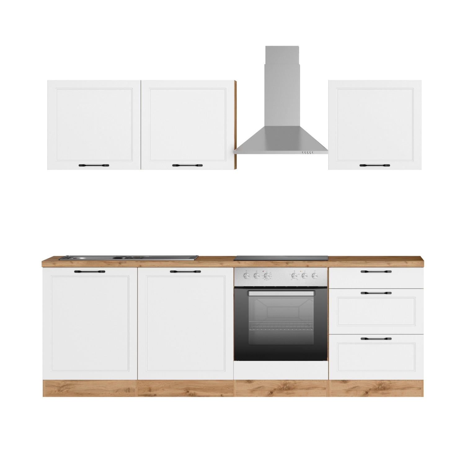 Held Küchen Küchenzeile Kempten 240 cm mit E-Geräten Wotan/Weiß