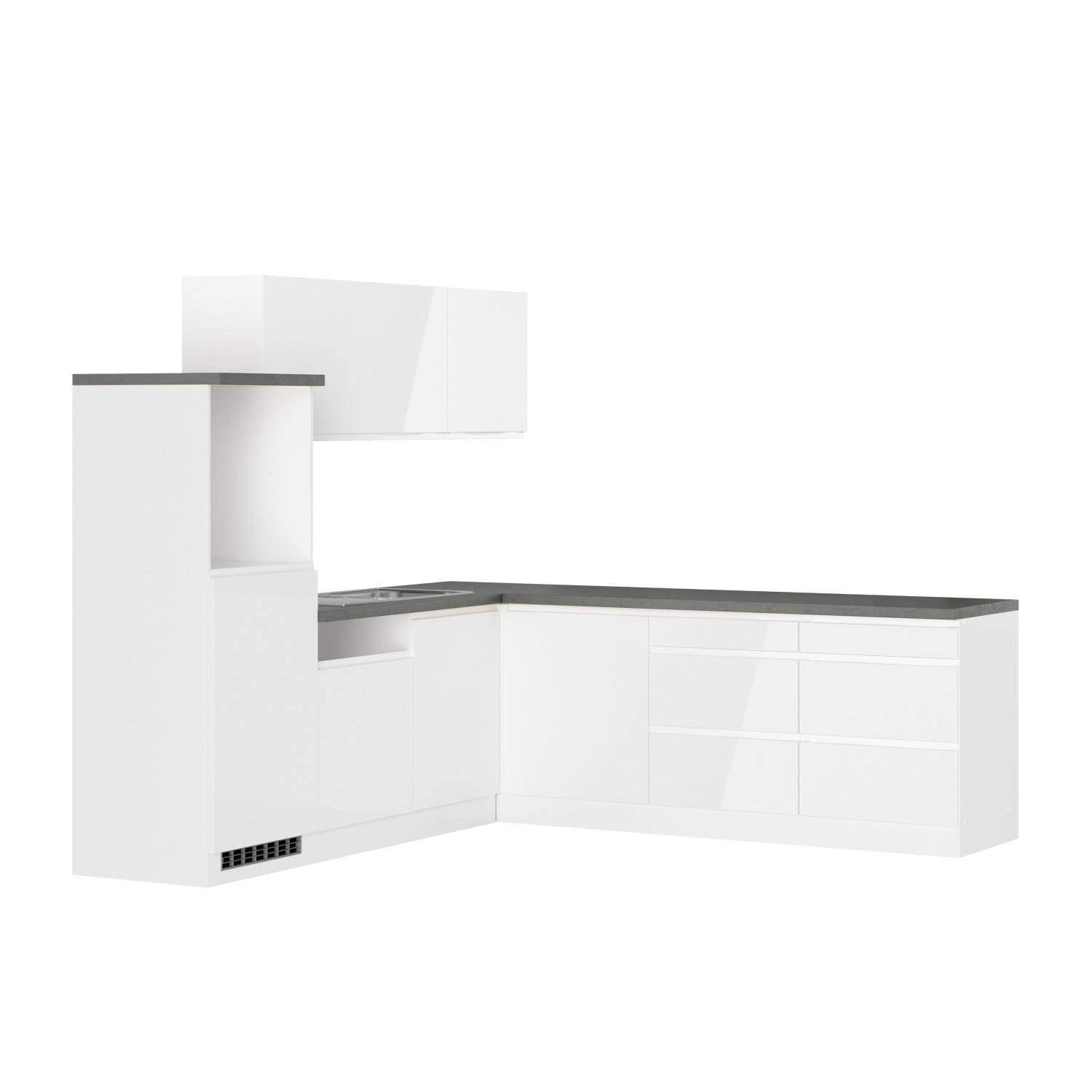 Held Küchen Winkelküche Gera 240 cm Weiß/Beton ohne E-Geräte