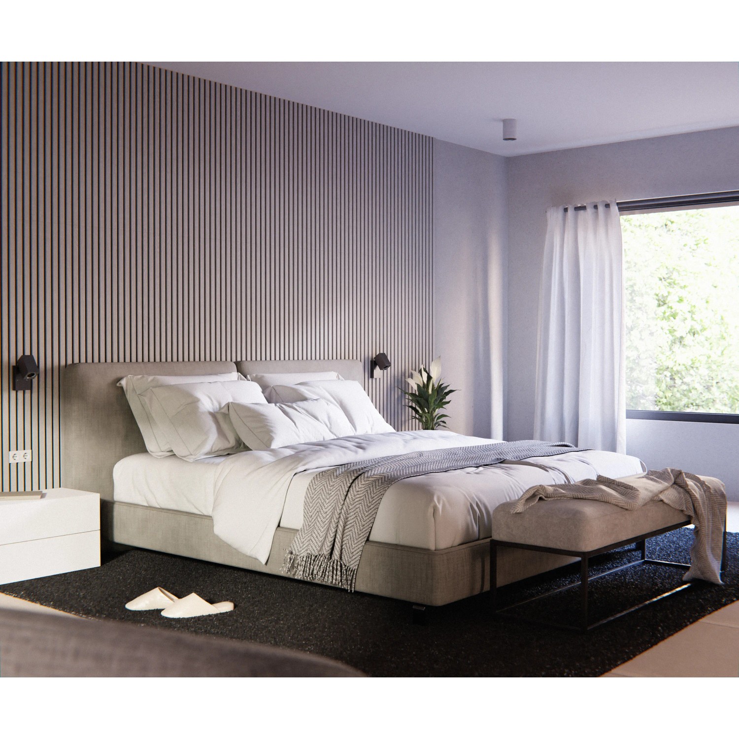 Die Akustikplatten lassen den Raum dank ihres Holzlooks tiefer und größer wirken. Kombinieren Sie verschiedene Formen und Proportionen von Akustikpaneelen, um einzigartige Muster und Designs an Wänden und Decken zu gestalten. Die Oberflächen aus echtem Holzfurnier unterstützen den skandinavischen Stil des Panels.