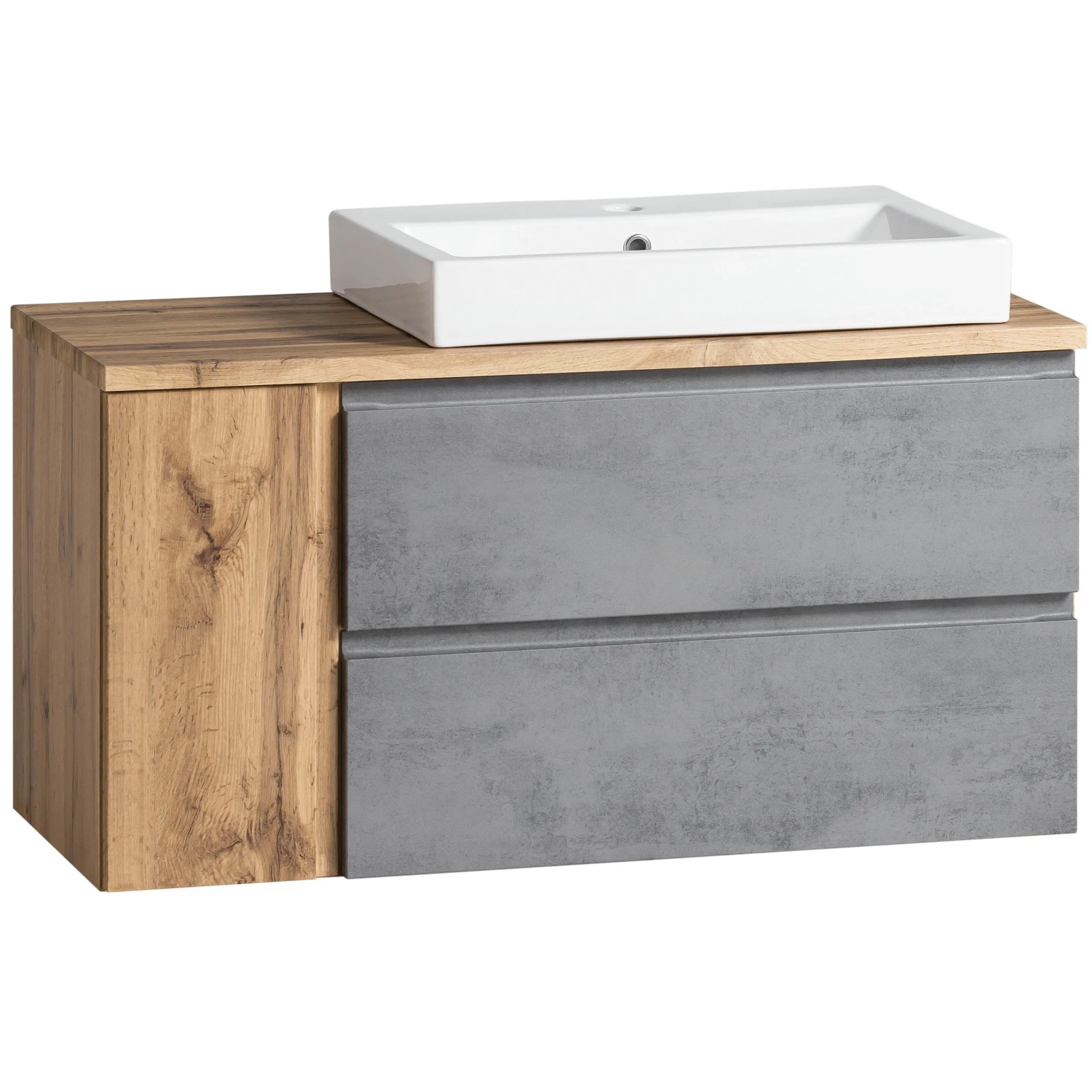 Held Möbel Waschtisch Ancona 105 cm Betongrau-Wotaneiche - Becken rechts