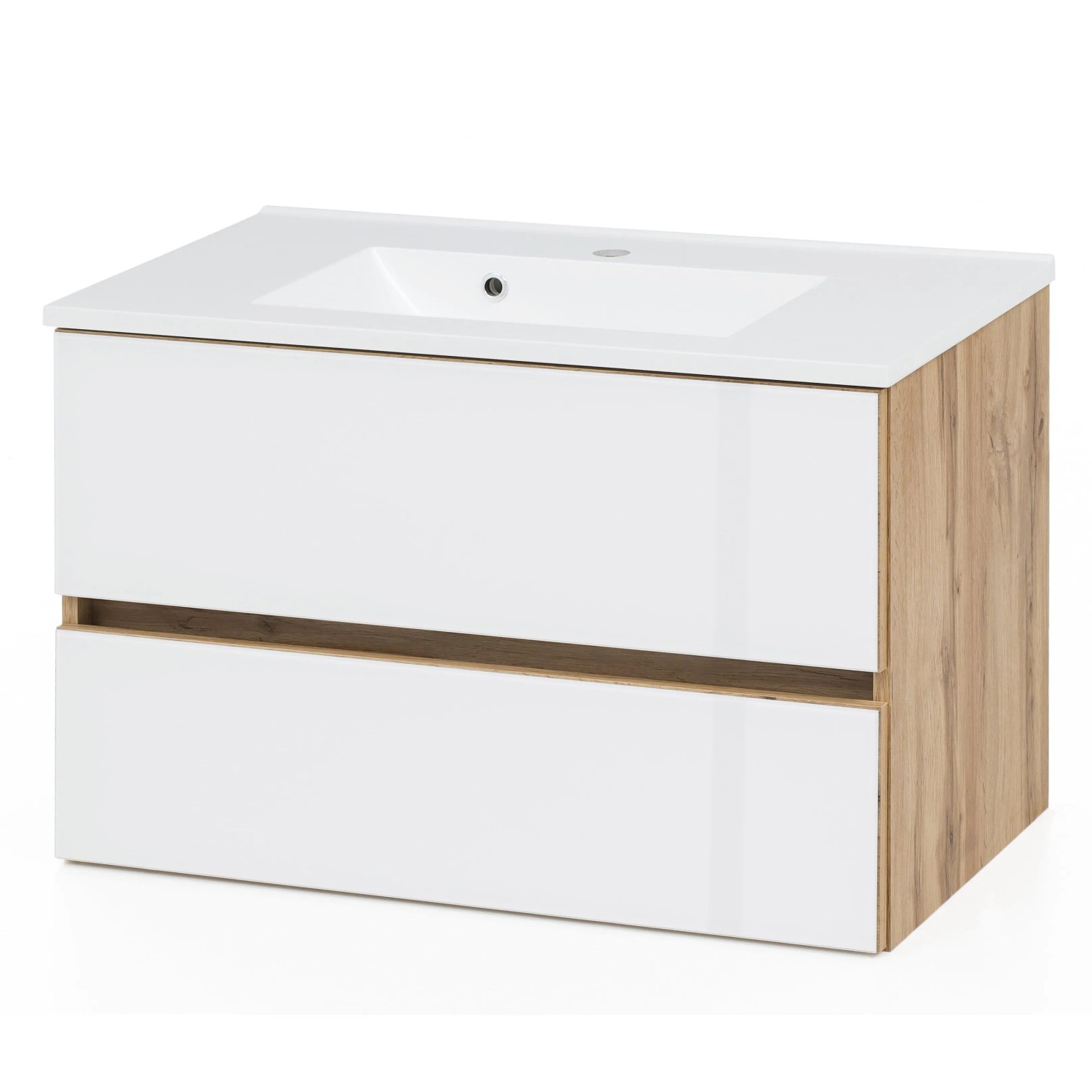 Held Möbel Waschtisch Pisa 80 cm Weiß-Wotaneiche
