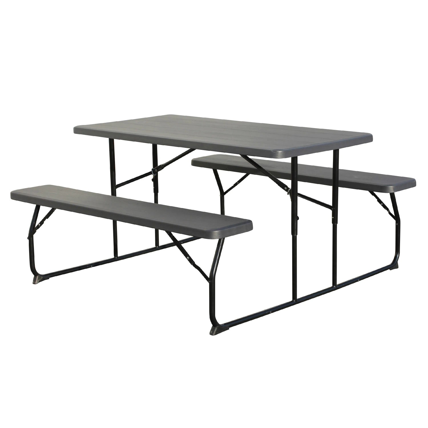 Tischplatte und Sitzfläche aus HDPE-Kunststoff, anthrazit mit Holzstruktur