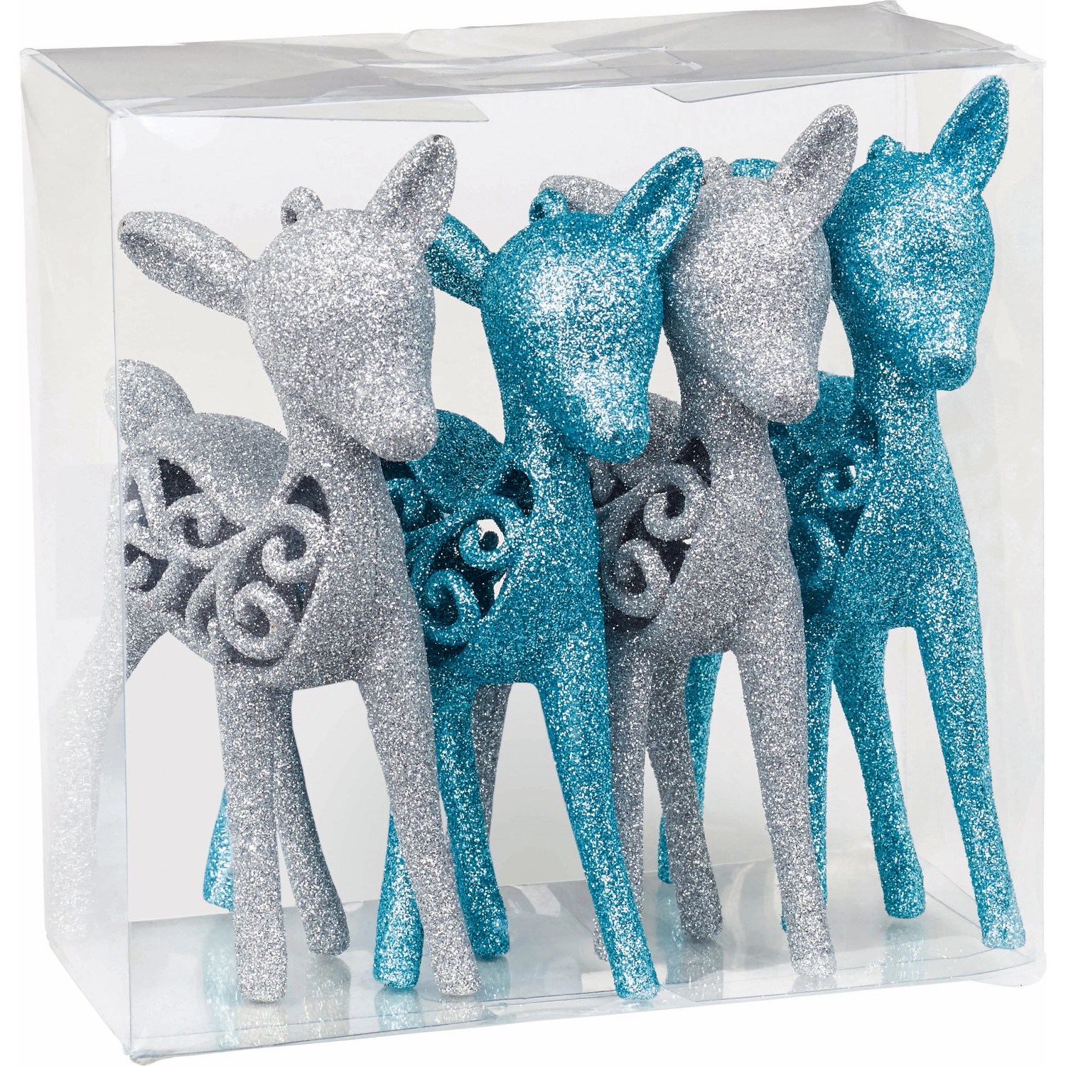 Baumschmuck-Set Rentiere 4-teilig Hellblau/Silber