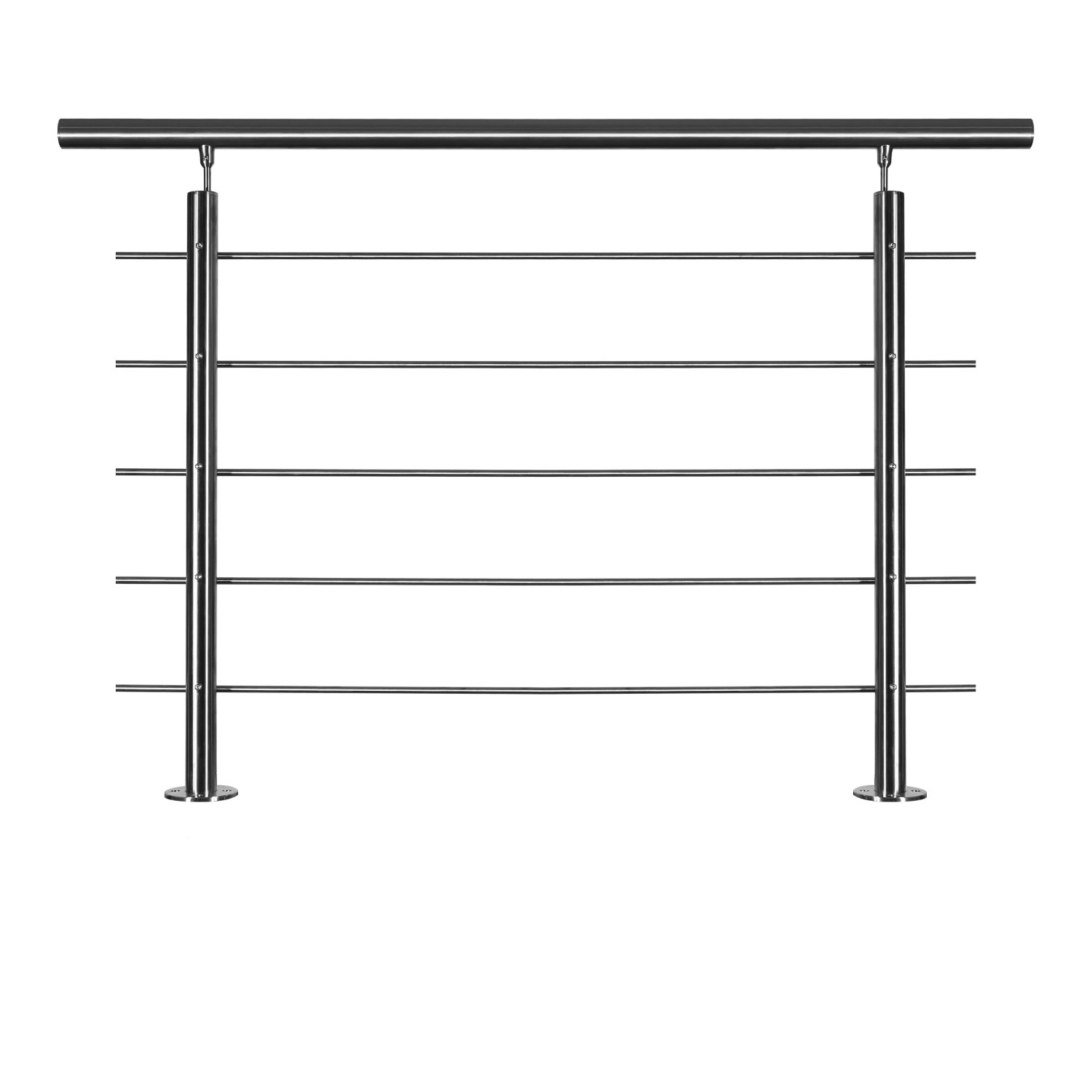 Lieferumfang: - 2 Geländerstäbe Edelstahl V2A Überkletterschutz Ø 4,2 cm, Länge = 82 cm - 1 Handlauf Edelstahl V2A mit 2 Endkappen Ø 4,2 cm, Länge = 150 cm - 5 mitlaufende Edelstahlstangen Ø 10 mm, Länge = 150 cm - Befestigungsmaterial im Lieferumfang nicht mit enthalten