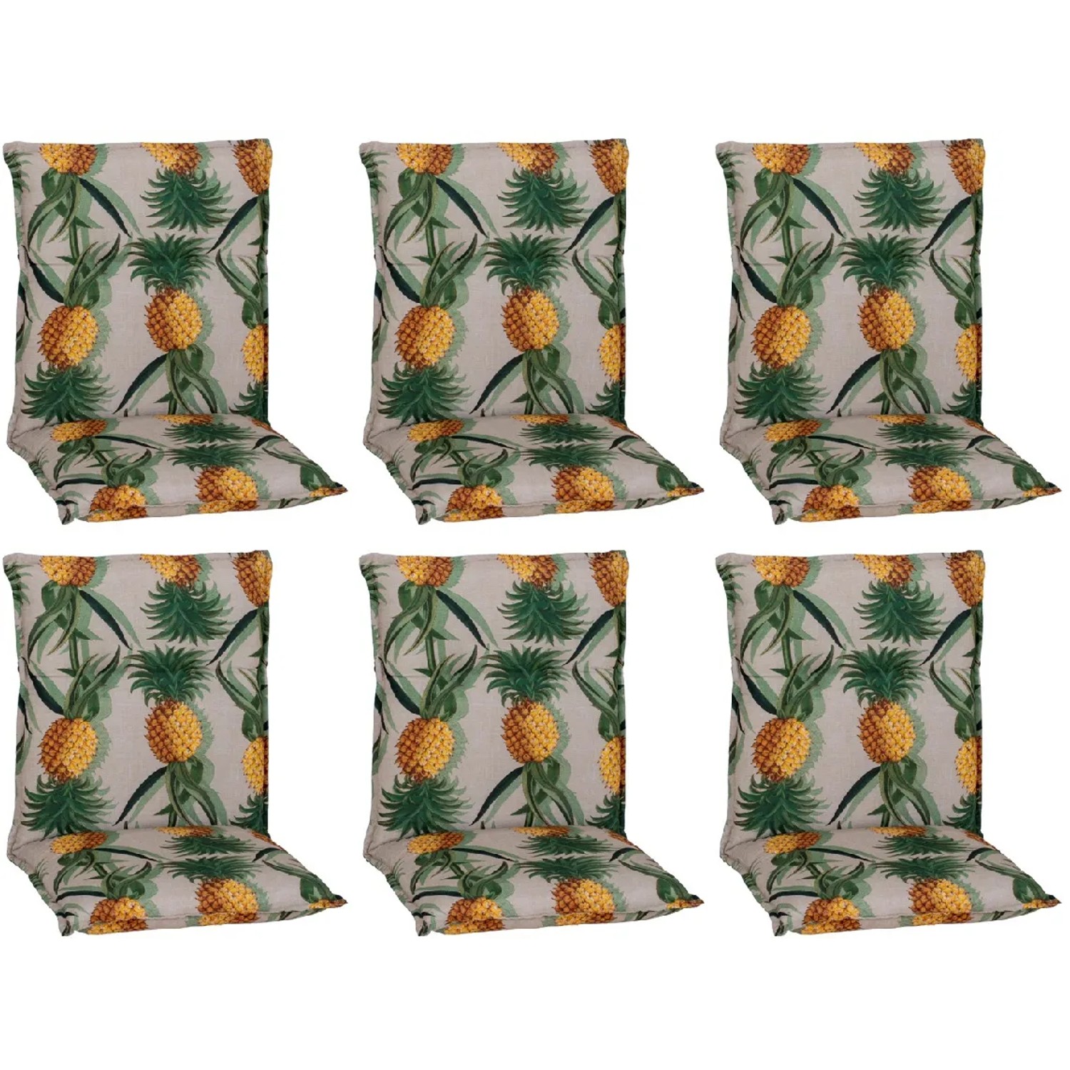 Ein zeitloses, elegantes Polster mit Ananas Motiv für Ihr Gartenmobiliar. Speziell passgenau für Niedriglehnerstühle. Maße: Länge ca. 98 cm x Breite ca. 46 cm x Stärke ca. 8 cm, waschbar (Handwäsche) bei 30 Grad, schadstofffrei nach neuestem Öko-Tex 100 Standard, beo Qualität seit 30 Jahren aus eigener Produktion in Handarbeit in eigener Produktion aus Europa, Bindebänder an der Sitzfläche / Schaumvlies Füllung / Gummiband im Lehnenbereich.