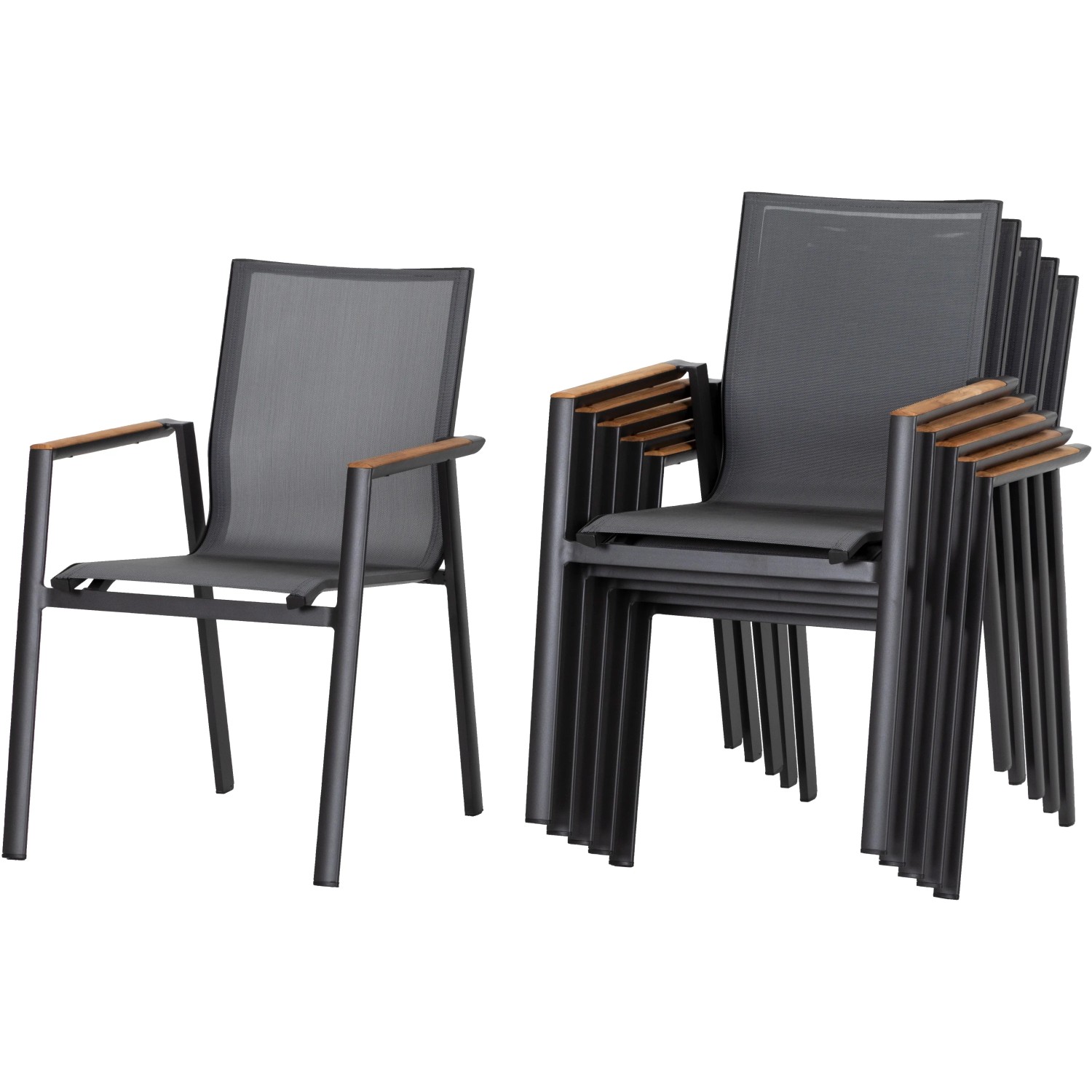 Acamp Stapelstuhl Vegas Aluminium mit Armlehnen Anthrazit Grau 6er Set